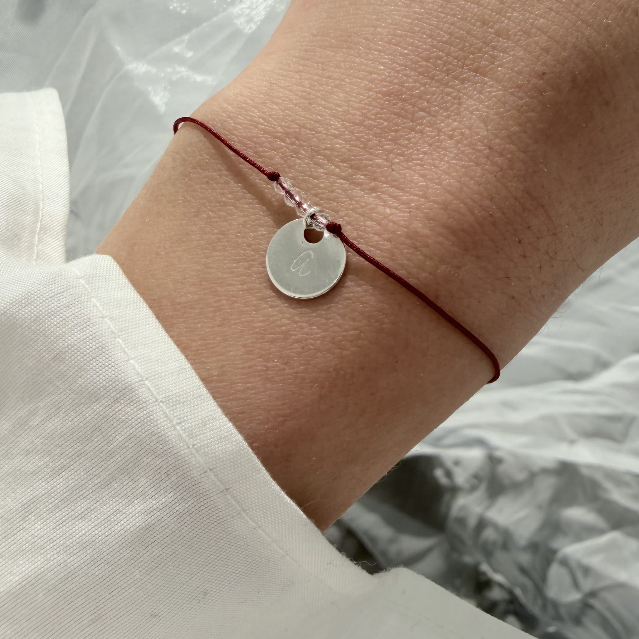 Bransoletka personalizowana z literką to lekka i elegancka forma biżuterii, która sprawdzi się jako codzienny dodatek lub drobny, przemyślany prezent. Wykonana na jubilerskim sznurku, posiada blaszkę o średnicy 8 mm, wykonaną z wysokiej jakości srebra próby 925 – dostępną również w wersji pozłacanej 24-karatowym złotem.