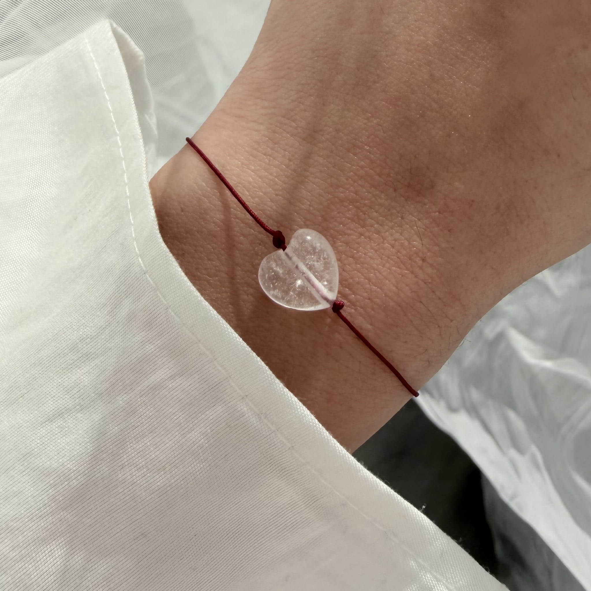 Stworzony z myślą o kolekcji walentynkowej, bransoletka na sznurku z kamieniem naturalnym w kształcie SERCA kryształ górski o delikatny sposób na wyrażenie uczuć – wobec kogoś bliskiego lub samej siebie.