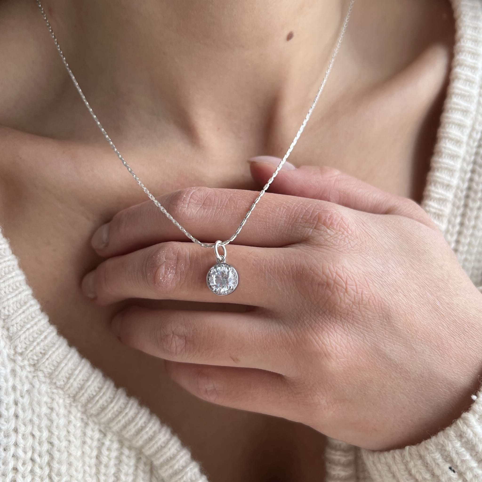 Subtelny łańcuszek o splocie „łańcuch delikatny” ozdobiony został pojedynczą cyrkonią, która delikatnie odbija światło, tworząc elegancki, minimalistyczny efekt. Długość 45 cm sprawia, że naszyjnik idealnie układa się na szyi i podkreśla dekolt. Jego masa to ok. 4,10 g – wystarczająco, by poczuć jakość, ale bez utraty lekkości.