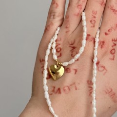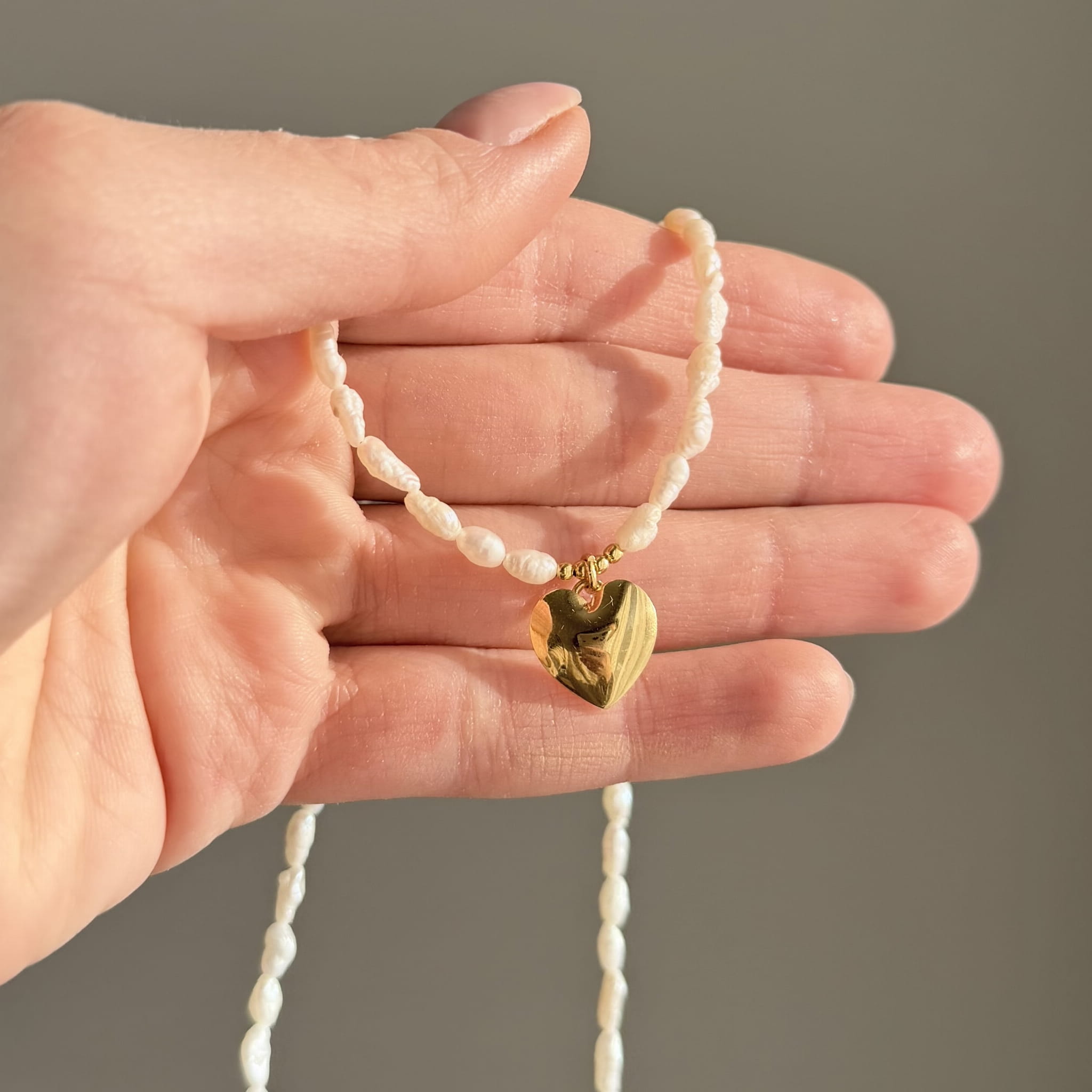 Naszyjnik z naturalnych pereł NIEIDEALNY SERCE MIŁOŚĆ POPROSZĘ