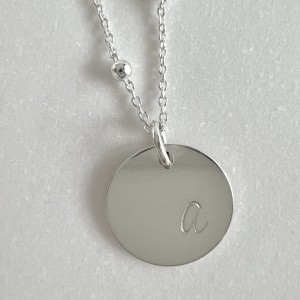 Personalizowany naszyjnik z literką to ponadczasowa biżuteria wykonana ze srebra próby 925 lub srebra pozłacanego 24-karatowym złotem. Okrągła blaszka o średnicy 12 mm połączona z łańcuszkiem o splocie z kulektworzy elegancki, a jednocześnie nowoczesny model, idealny na co dzień i na wyjątkowe okazje.