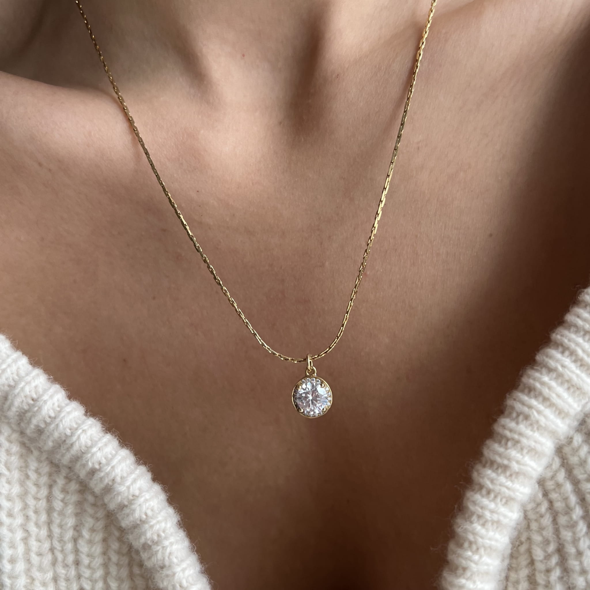 Subtelny łańcuszek o splocie „łańcuch delikatny” ozdobiony został pojedynczą cyrkonią, która delikatnie odbija światło, tworząc elegancki, minimalistyczny efekt. Długość 45 cm sprawia, że naszyjnik idealnie układa się na szyi i podkreśla dekolt. Jego masa to ok. 4,10 g – wystarczająco, by poczuć jakość, ale bez utraty lekkości.