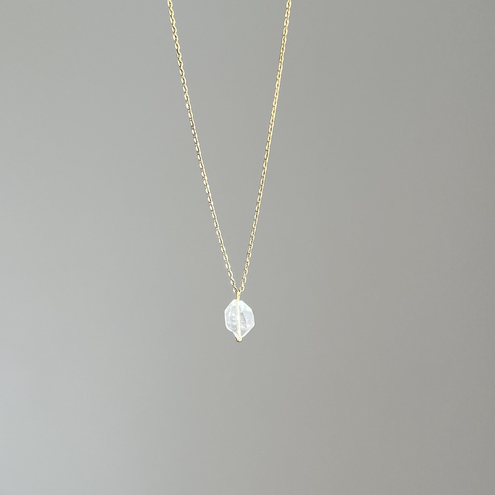 Centralnym punktem naszyjnika jest diament Herkimer – w rzeczywistości naturalny, podwójnie zakończony kwarc górski, znany z przejrzystości i pięknego połysku. To kamień symbolizujący czystość, harmonię i wewnętrzną energię.