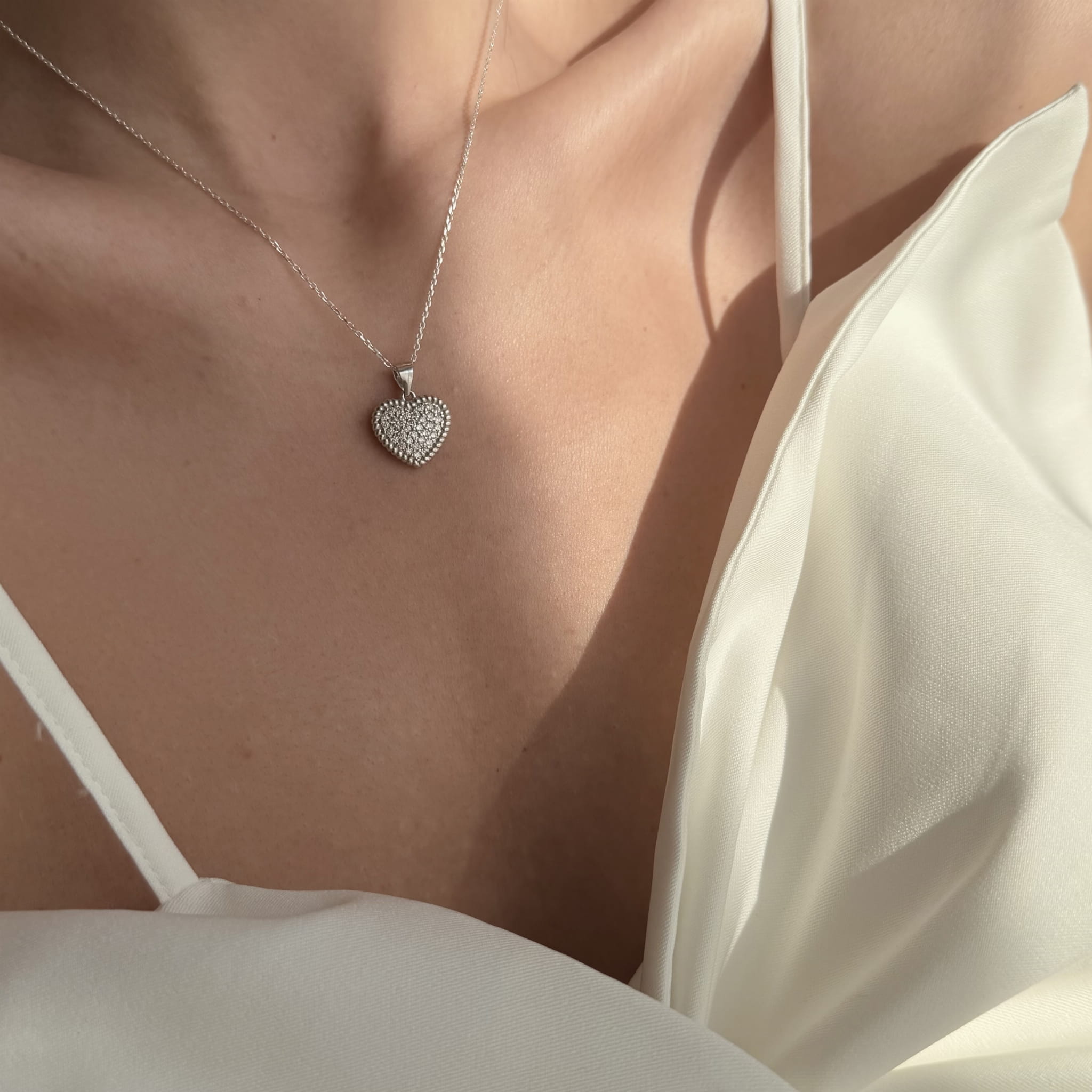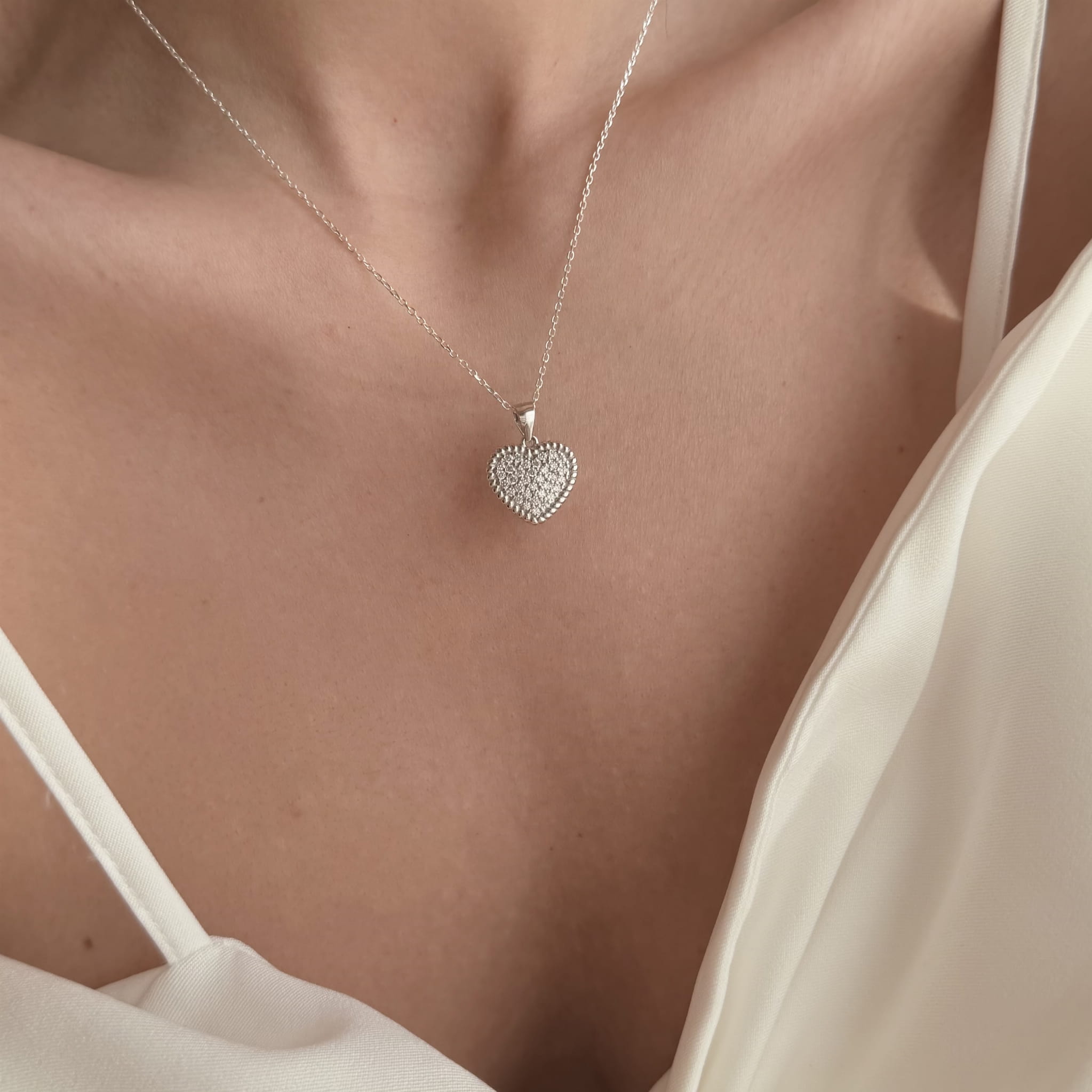 Zawieszka w kształcie serca o średnicy 15 mm jest delikatnie wyeksponowana i stanowi wyrazisty, a jednocześnie nienachalny akcent. Długość 45 cm sprawia, że naszyjnik pięknie układa się na dekolcie, a masa ok. 3,10 g zapewnia wygodę noszenia przez cały dzień.