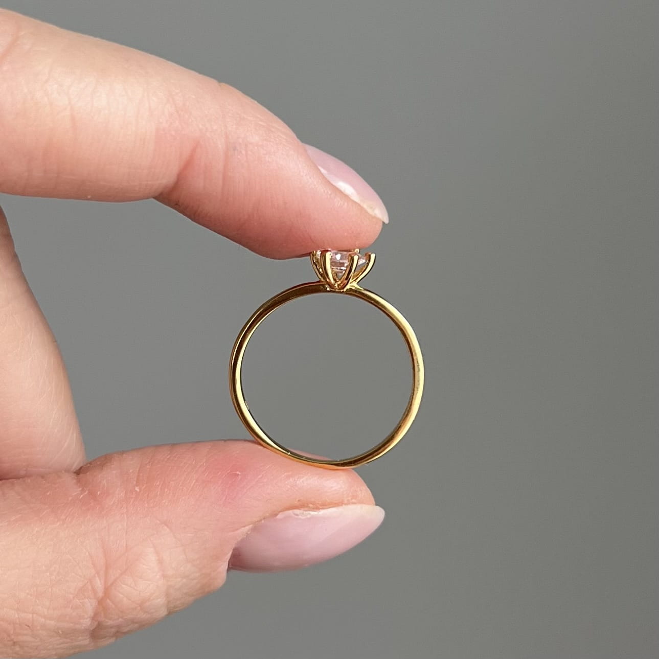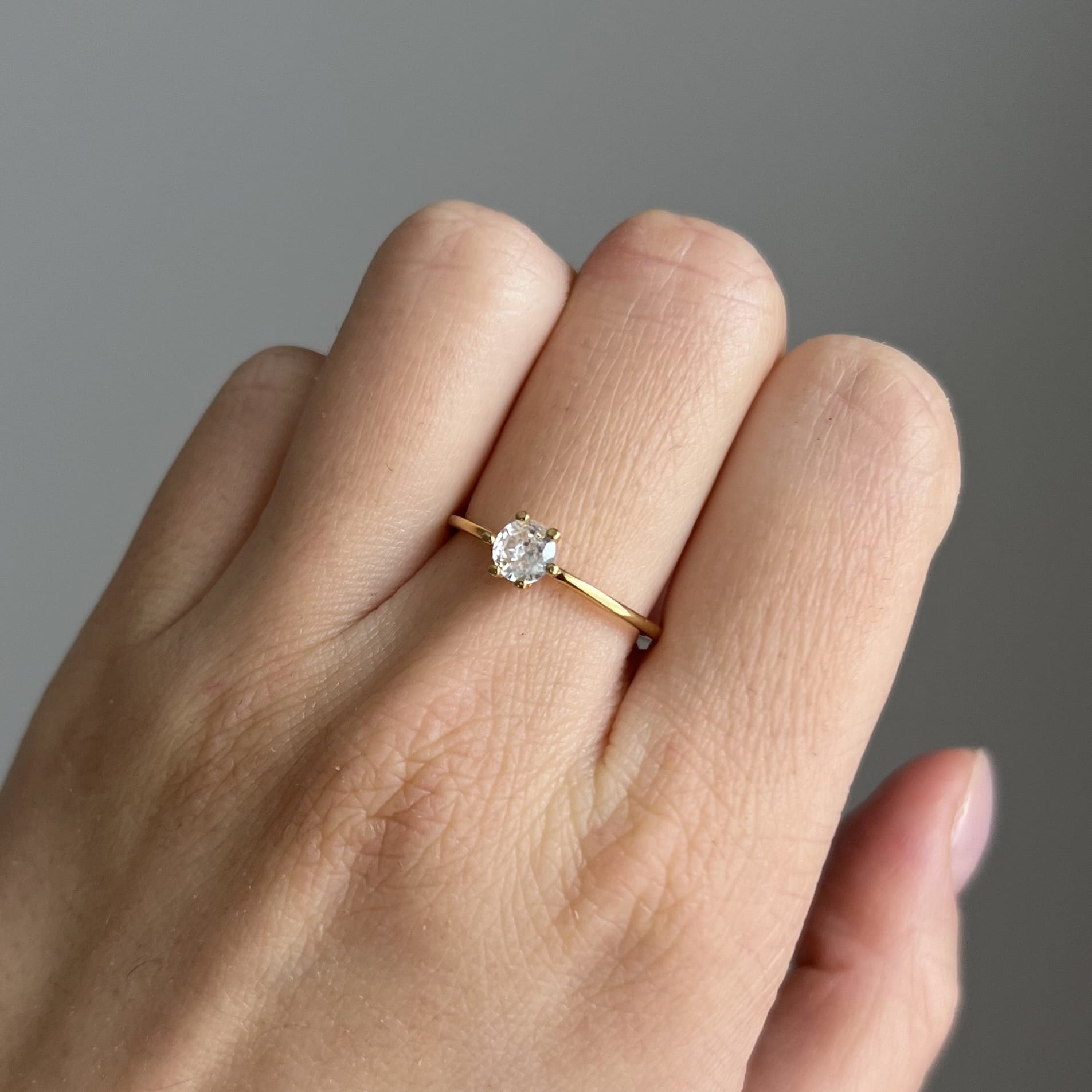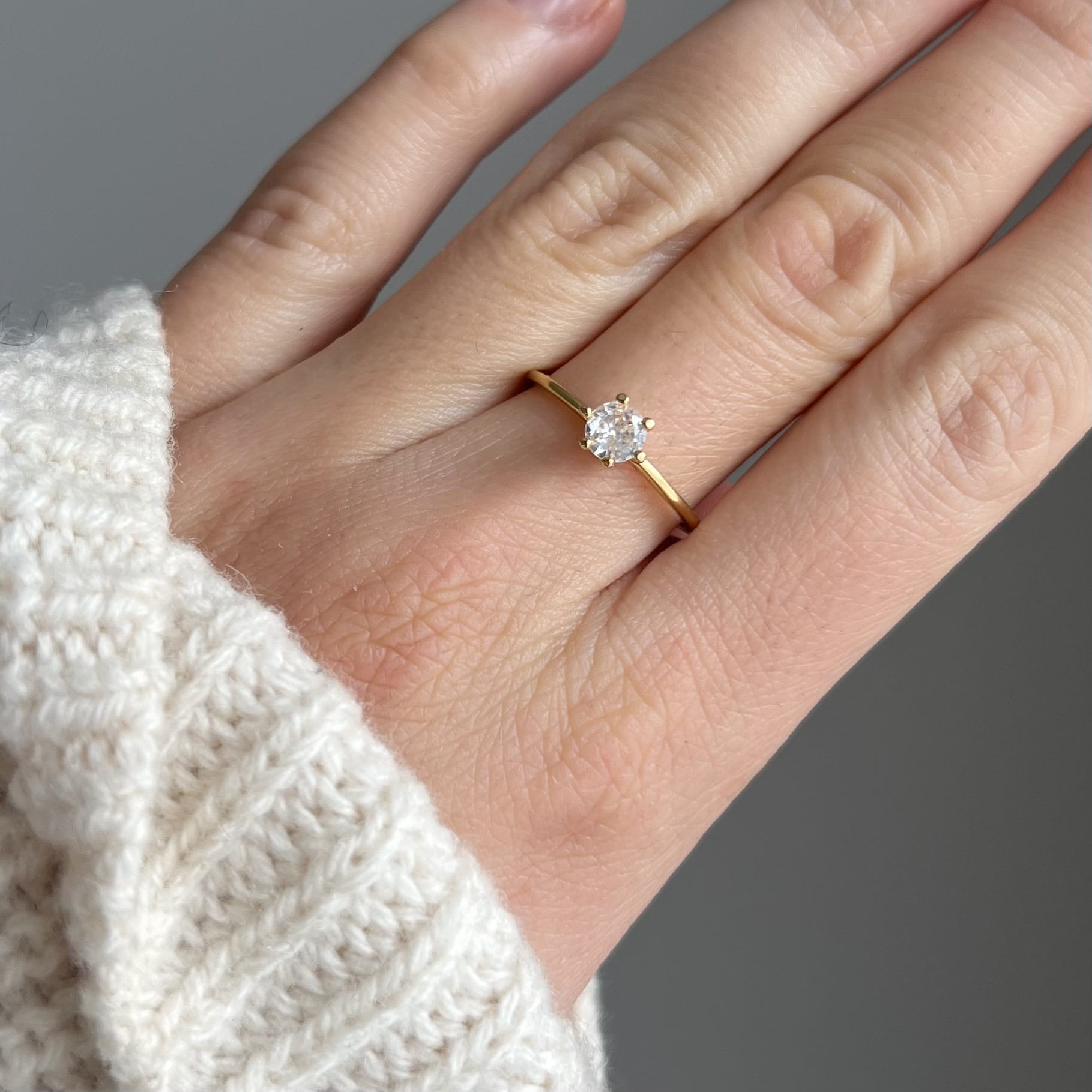 Centralnie osadzona cyrkonia o średnicy 5 mm jest pięknie wypolerowana i efektownie odbija światło, dodając dłoni subtelnego blasku. Pierścionek waży ok. 1,15 g, dzięki czemu jest lekki, wygodny i idealny do noszenia na co dzień.