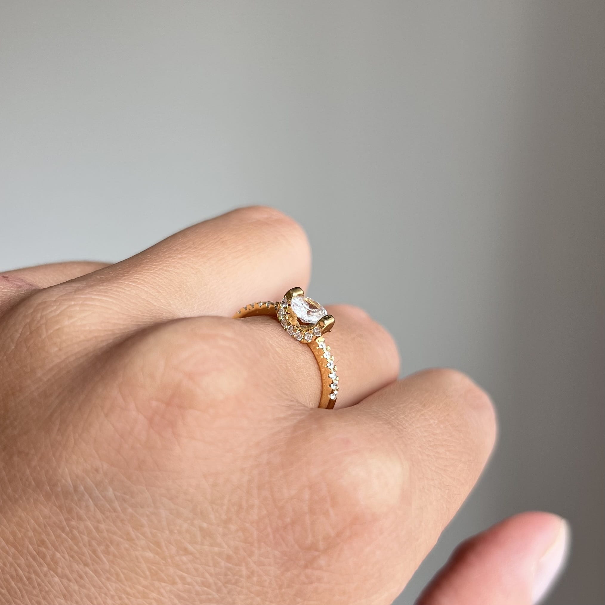 Srebrny pozłacany pierścionek z cyrkoniami ZACHWYT