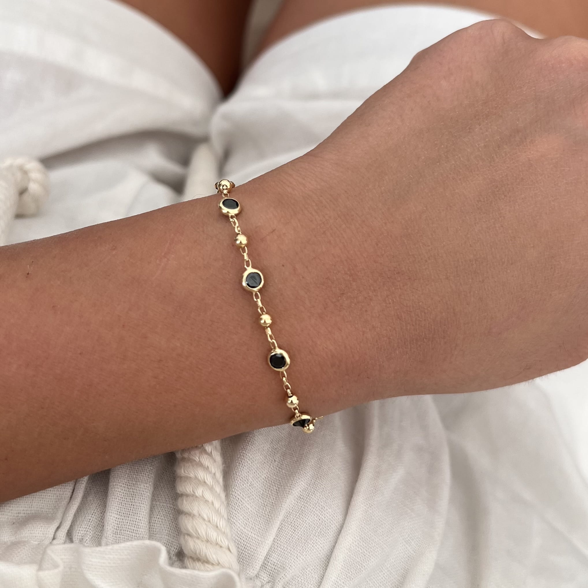 Pozłacana bransoletka ze srebra 925 z czarnymi cyrkoniami. Subtelna, ale wyrazista – dla kobiet, które lubią klasykę z nutą tajemnicy.