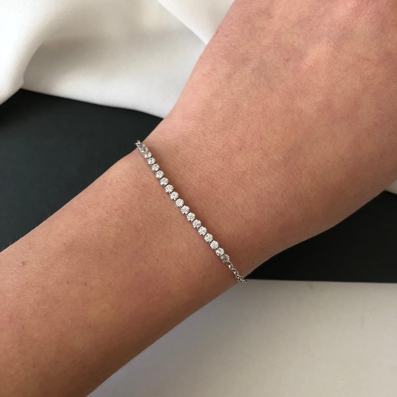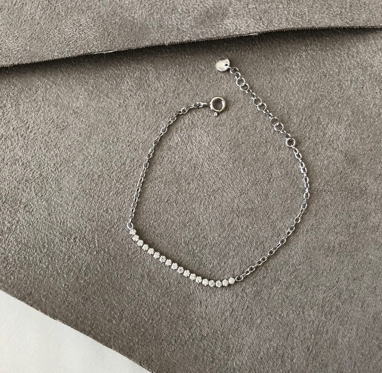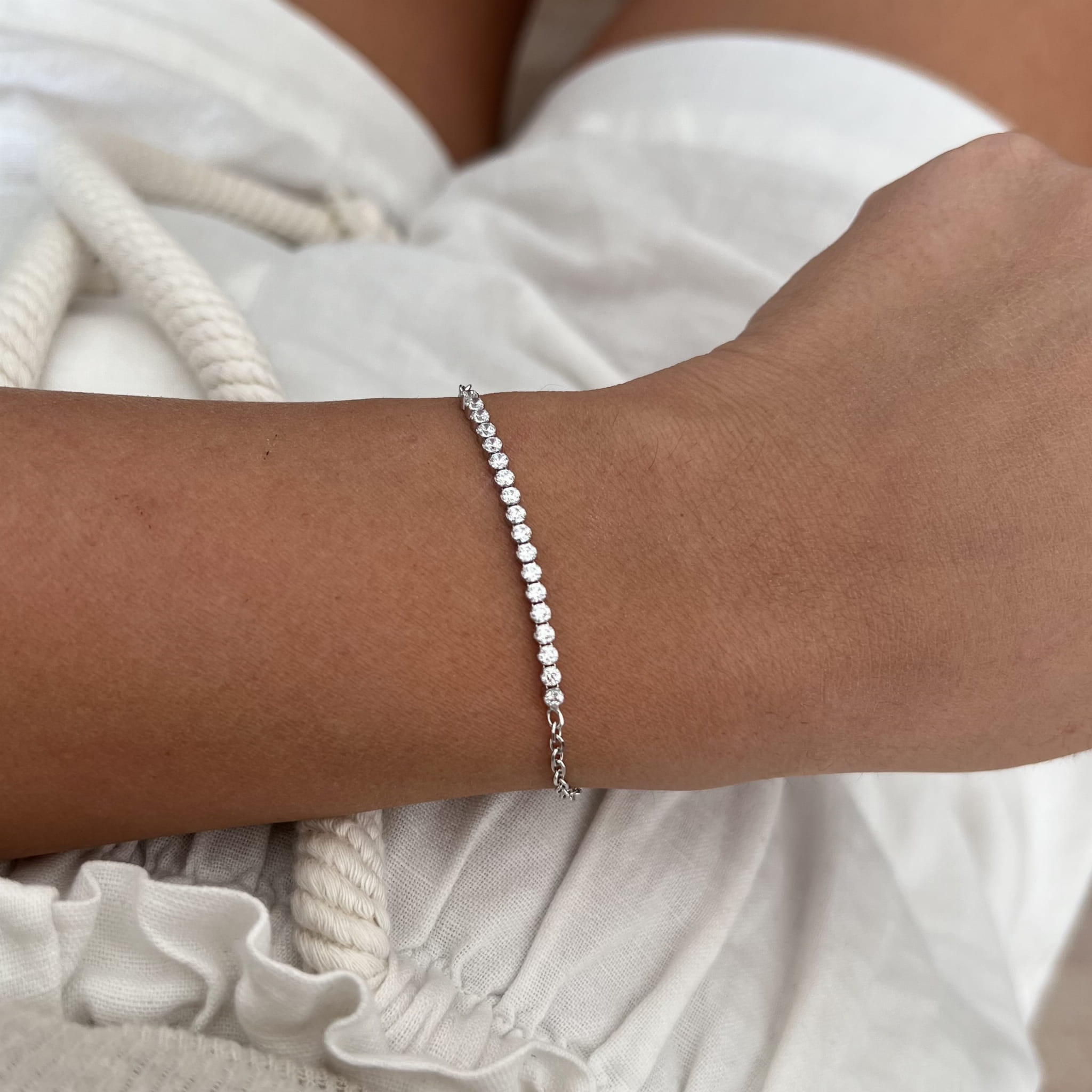 srebrna bransoletka z rzędem lśniących białych cyrkonii. Lekka, elegancka i idealna na co dzień.