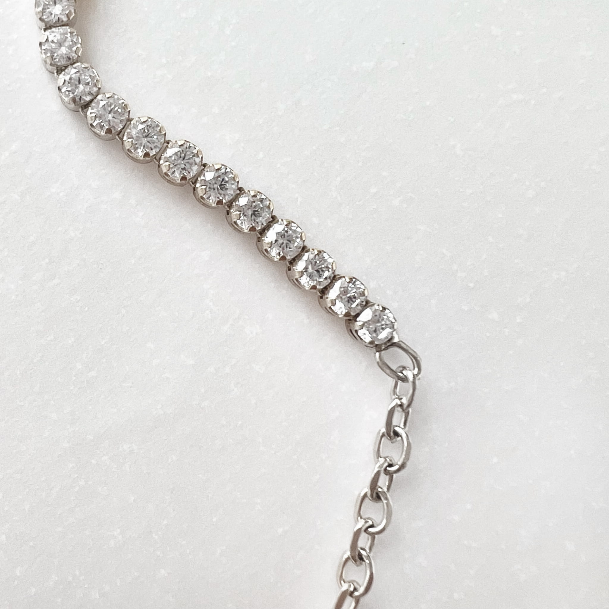 Model zdobią białe cyrkonie, które pięknie odbijają światło, tworząc subtelny połysk na nadgarstku. Długość regulowana 15–19 cm pozwala na idealne dopasowanie, niezależnie od wielkości nadgarstka.
