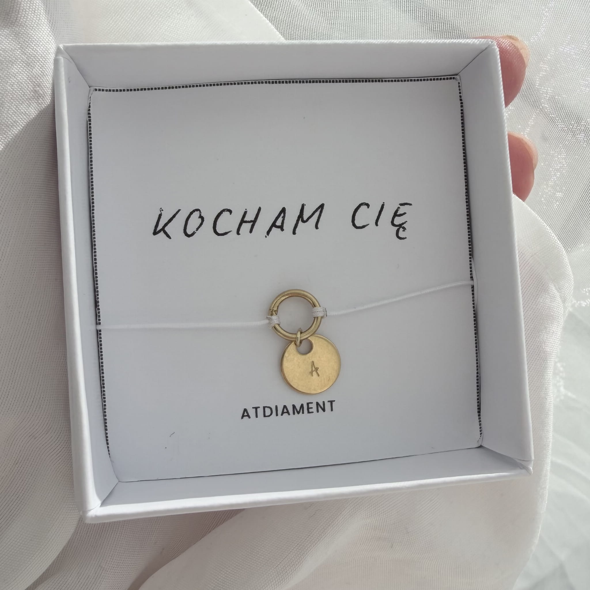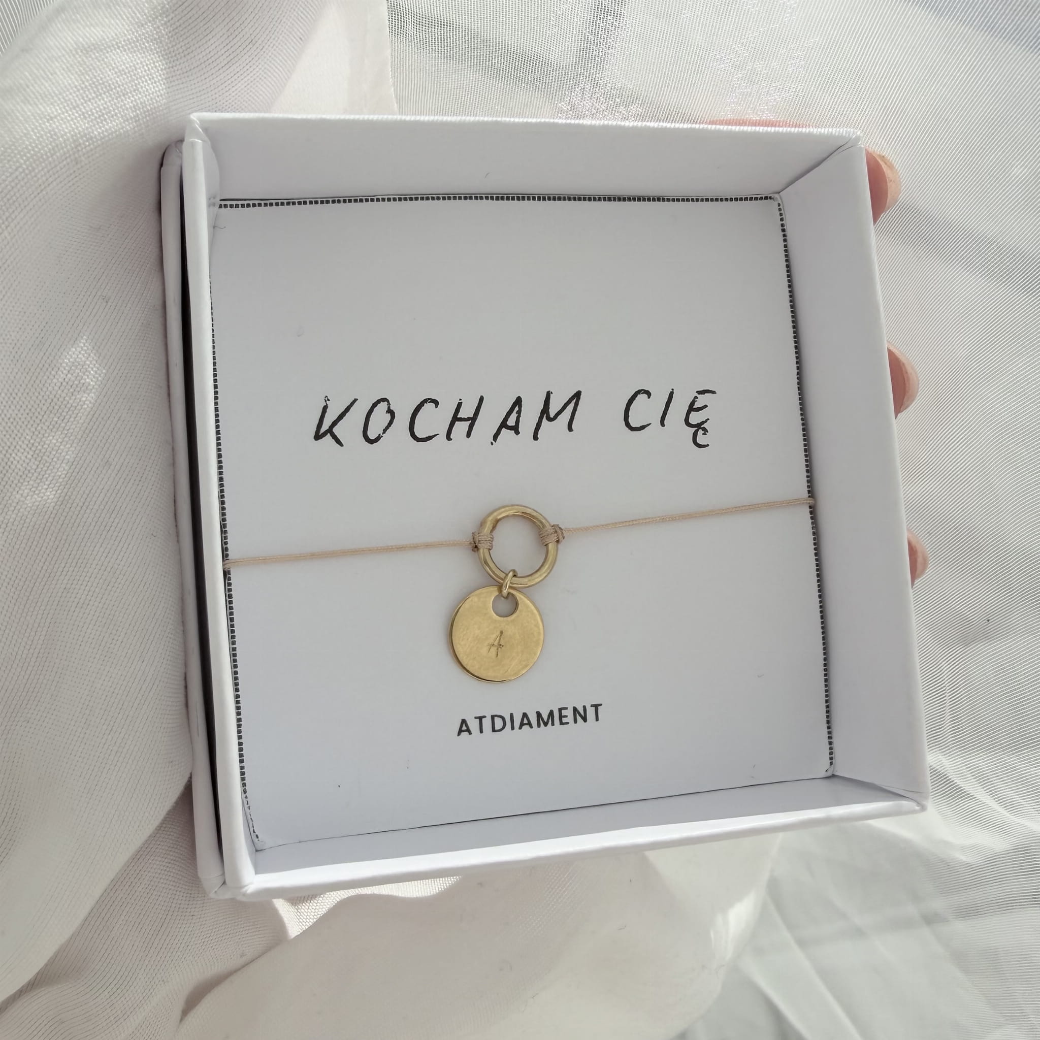 Biżuteria nie zawiera niklu, dlatego jest bezpieczna dla skóry i odpowiednia również dla alergików. Każdy egzemplarz jest nowy, posiada metkę i zapakowany jest w ozdobne pudełko oraz firmową torebkę ATdiament. W zestawie znajduje się także karteczka z intencją „KOCHAM CIĘ”, dzięki czemu bransoletka jest gotowa do wręczenia jako prezent.