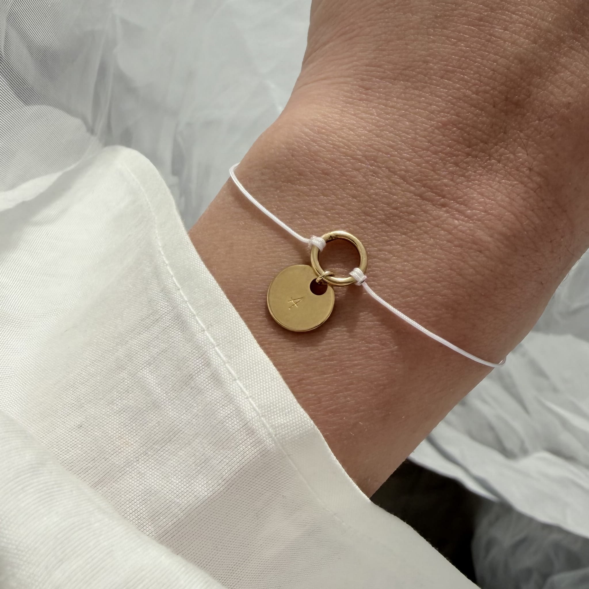 Bransoletka personalizowana z literką to lekka i elegancka forma biżuterii, która sprawdzi się jako codzienny dodatek lub drobny, przemyślany prezent. Wykonana na jubilerskim sznurku, posiada blaszkę o średnicy 8 mm, wykonaną z wysokiej jakości srebra próby 925 – dostępną również w wersji pozłacanej 24-karatowym złotem.