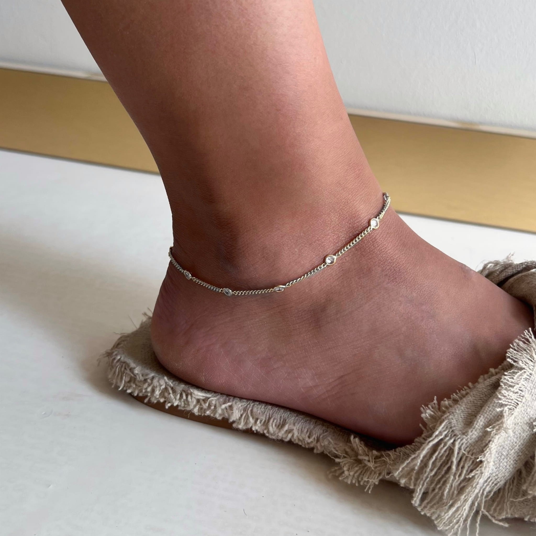Srebrna bransoletka na kostkę z białą cyrkonią wykonany w całości ze srebrna