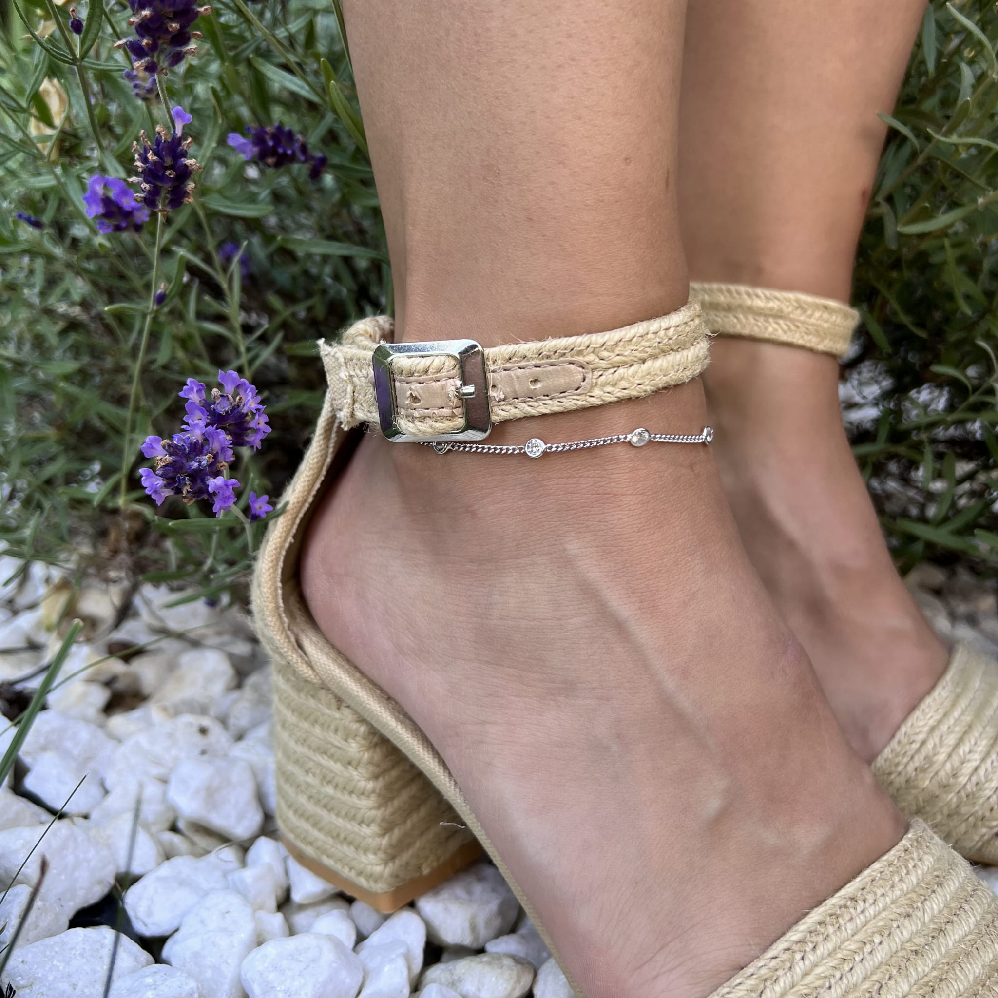 Lśniąca biała cyrkonia pięknie odbija światło, nadając stylizacji wyjątkowej lekkości i kobiecości. Regulowana długość 23-27 cm sprawia, że bransoletka doskonale dopasowuje się do każdej kostki, zapewniając wygodę noszenia. Dodatkowo, brak niklu w składzie sprawia, że jest bezpieczna dla alergików.