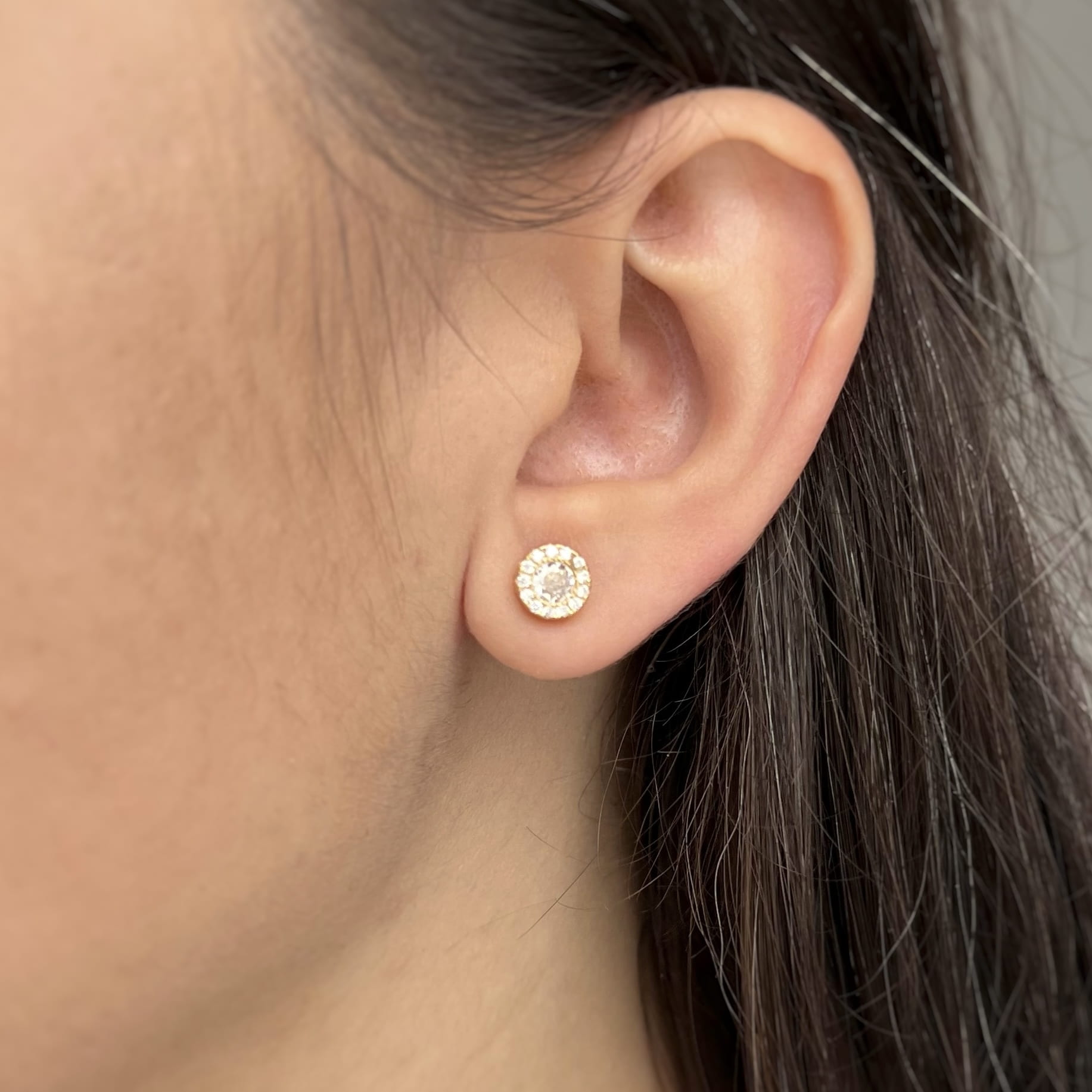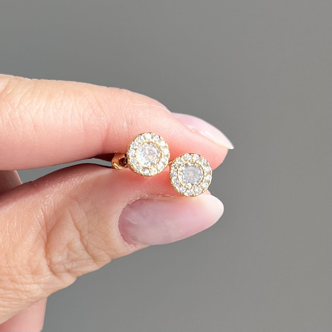 Srebrne pozłacane kolczyki koła z delikatnymi cyrkoniami, które rozświetlają twarz i dodają świeżości każdej stylizacji.