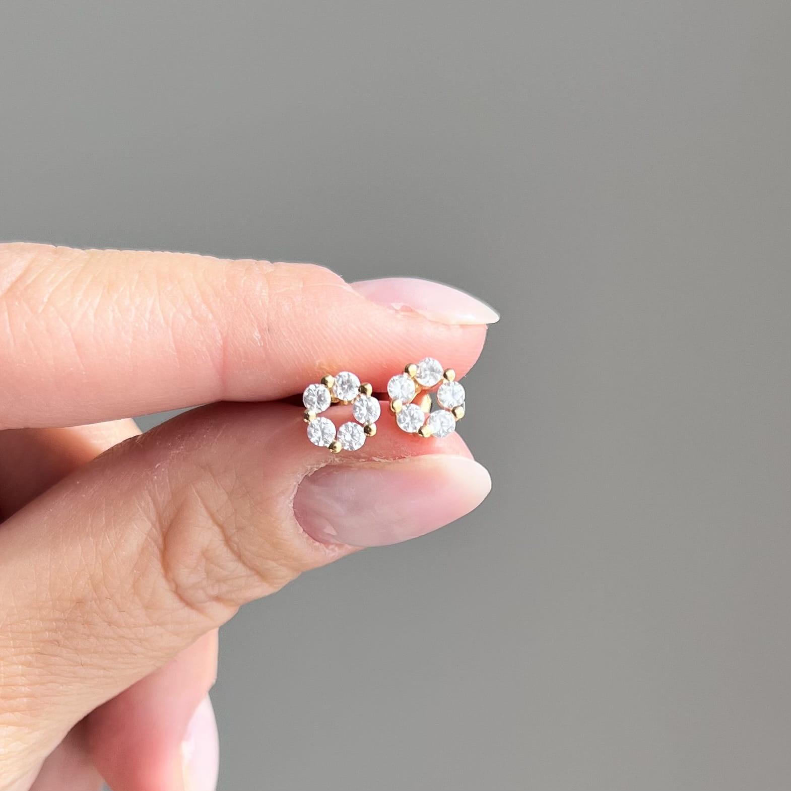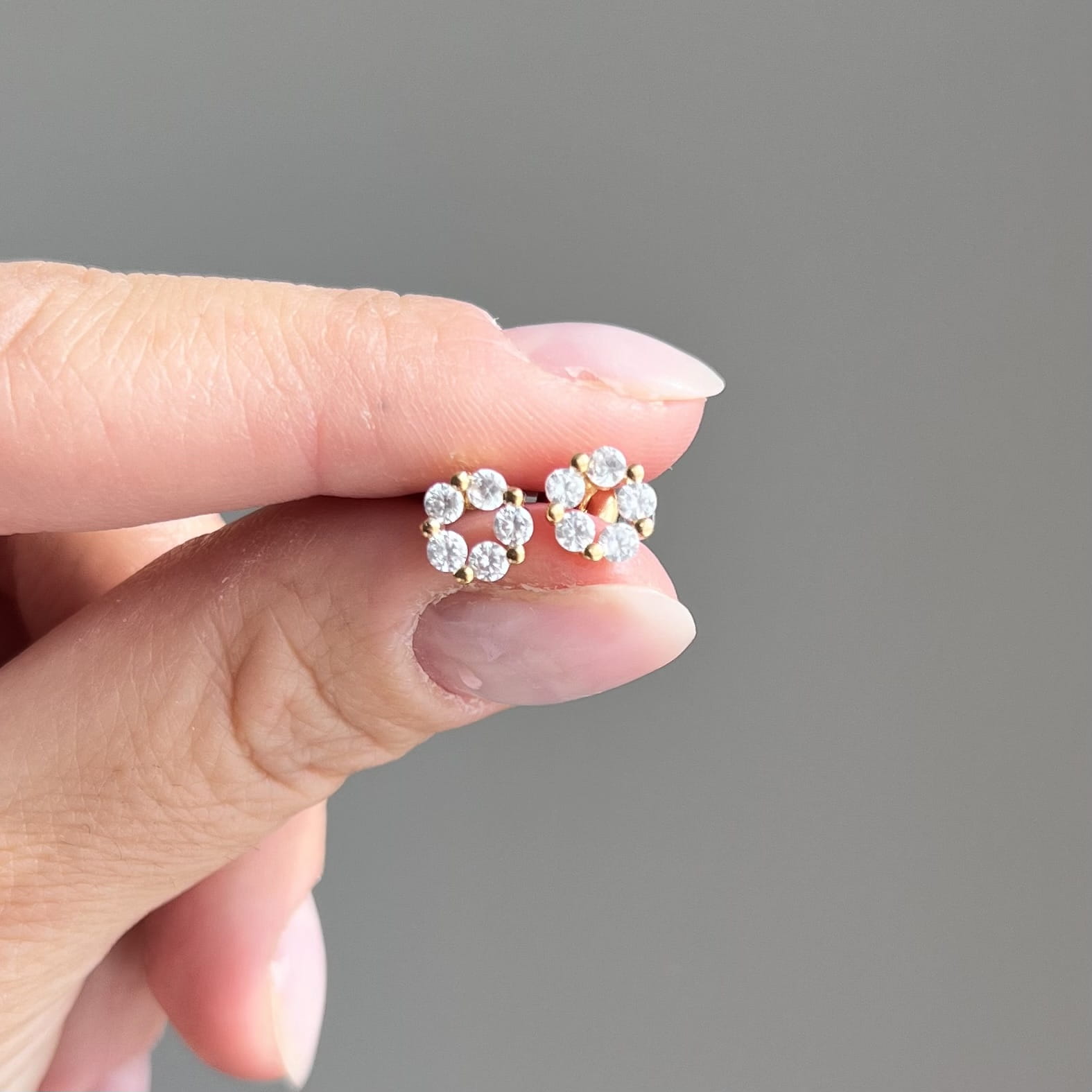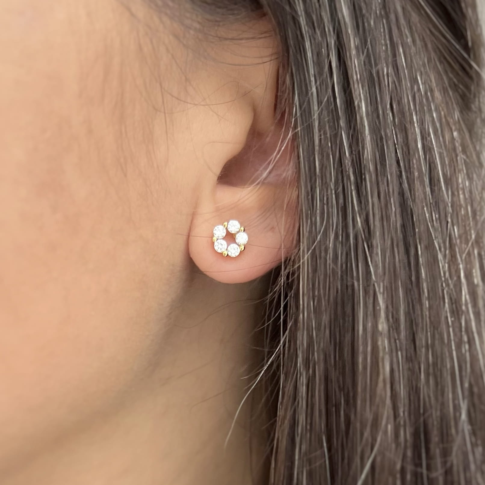 Zdobione lśniącymi cyrkoniami, kolczyki odbijają światło przy każdym ruchu głowy. Ich szerokość 5 mm sprawia, że są zauważalne, ale wciąż bardzo lekkie – ich masa to ok. 2,05 g. Dzięki sztyftowemu zapięciu są wygodne i dobrze trzymają się na uchu.