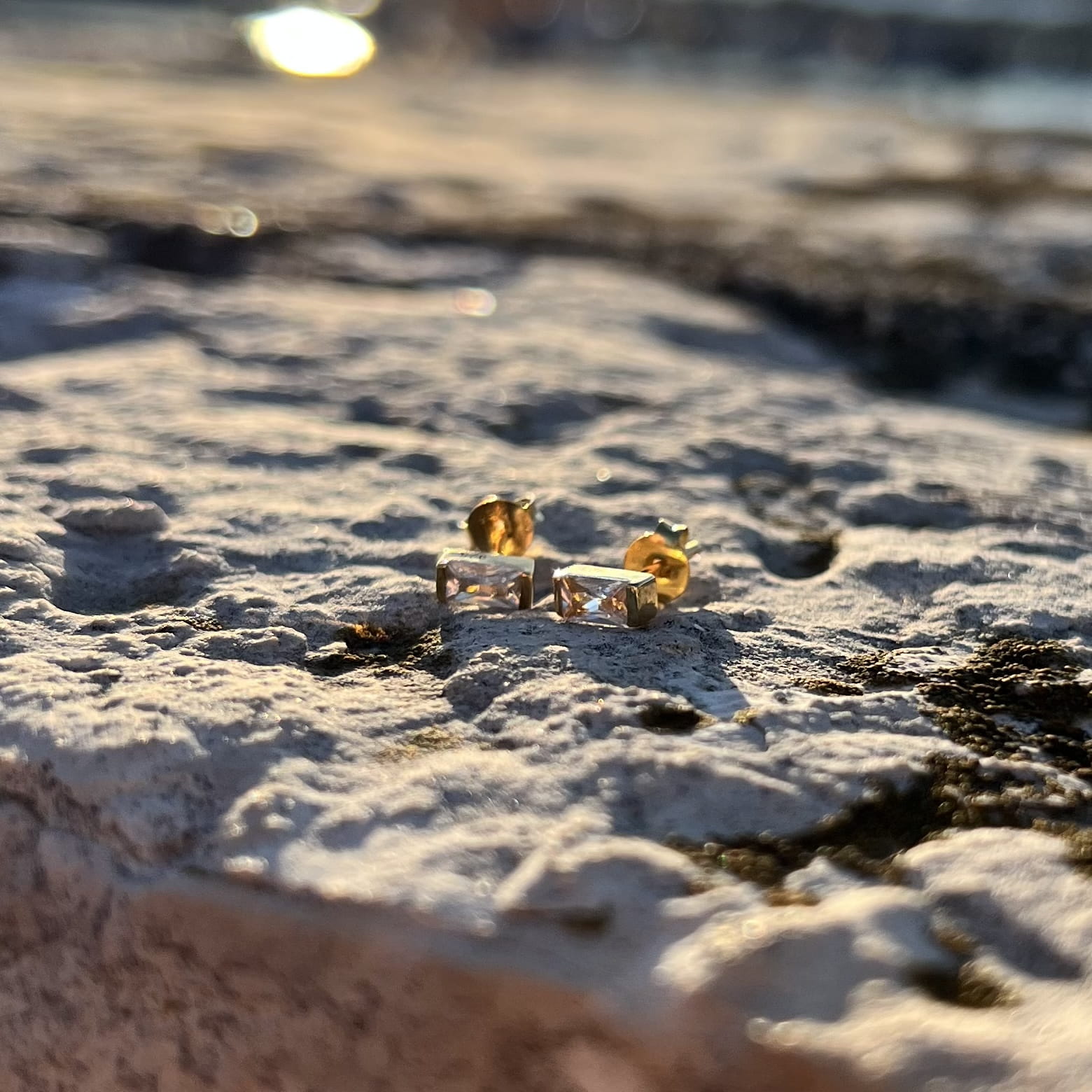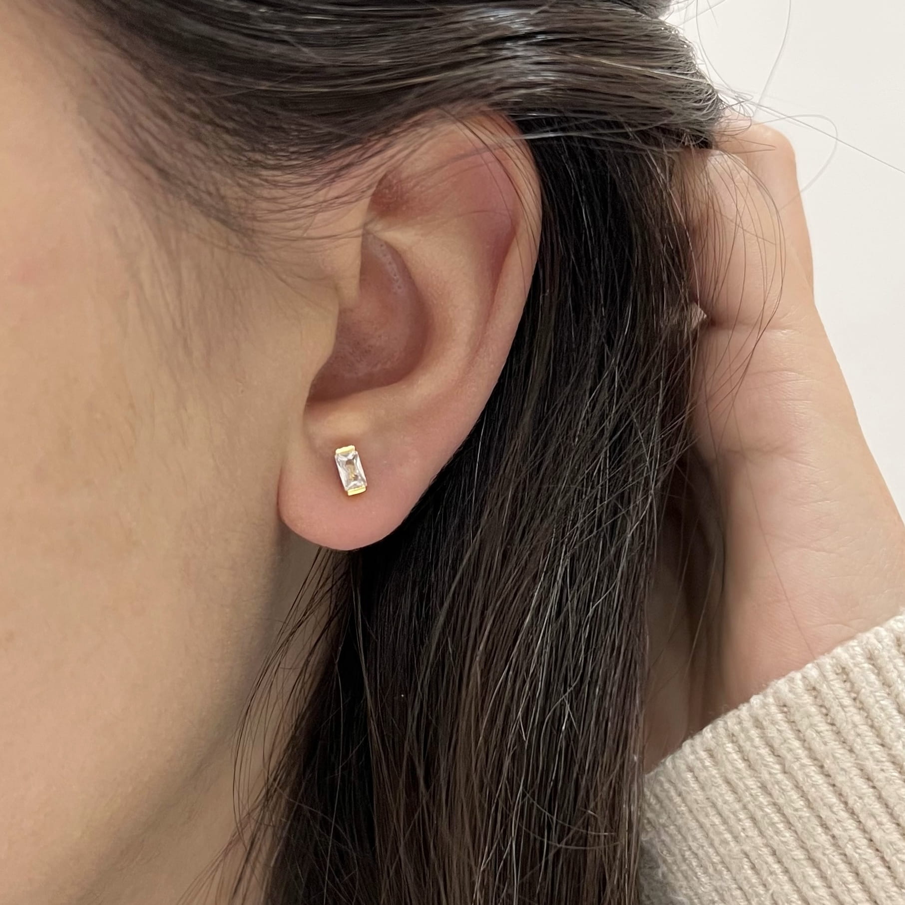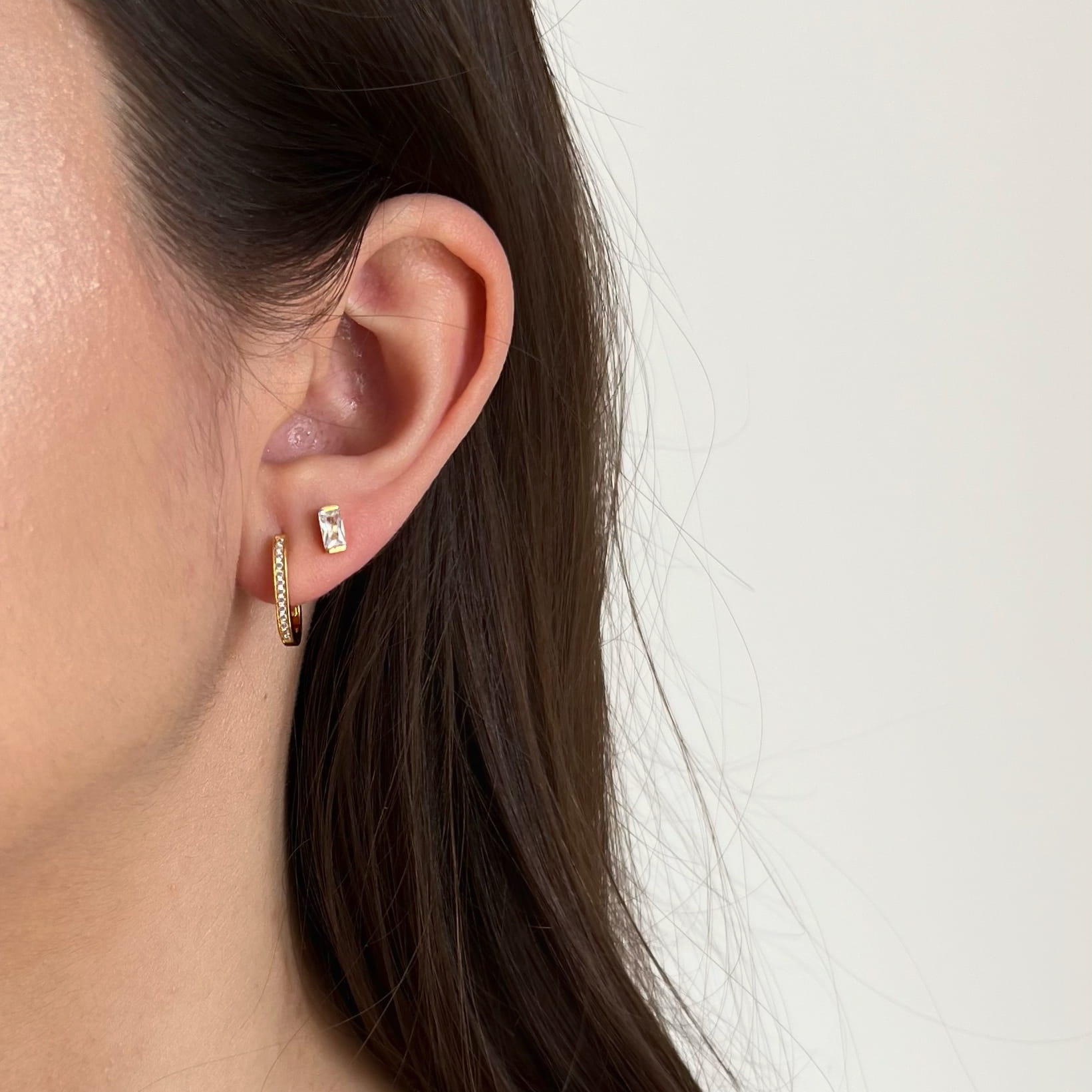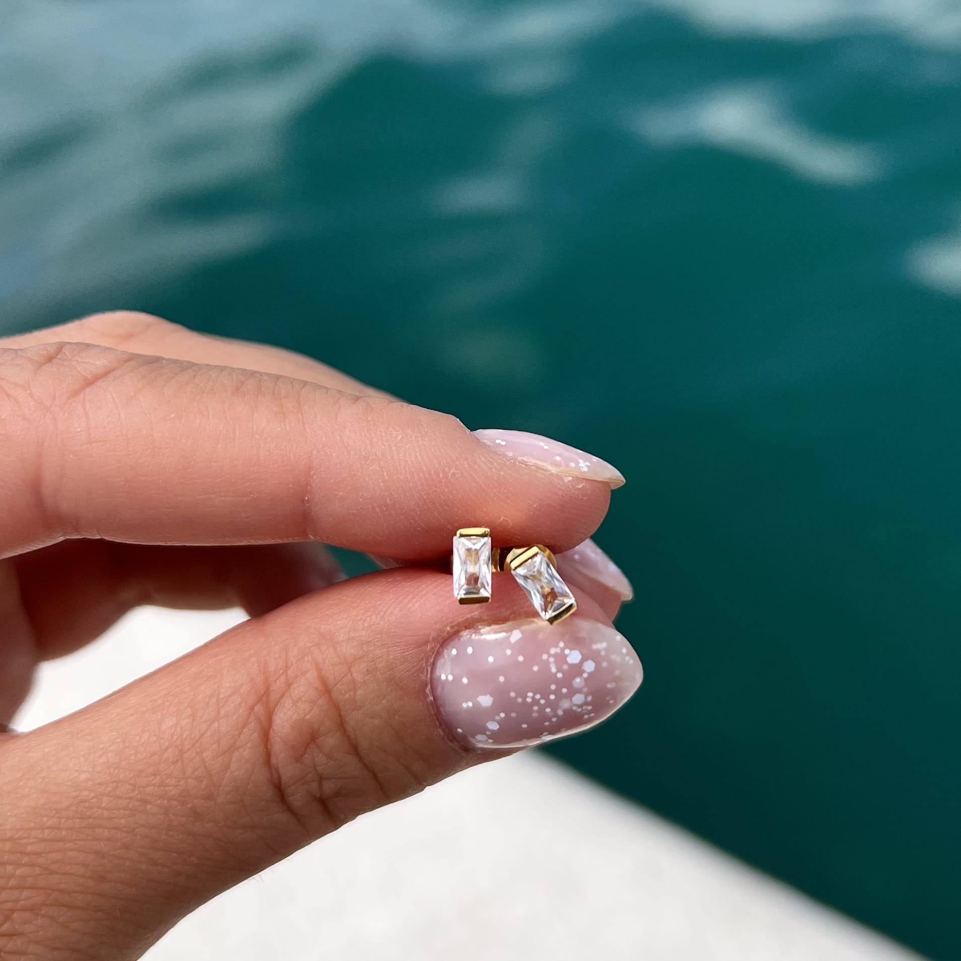 Pozłacane kolczyki z cyrkoniami PROSTOKĄT to nowoczesny dodatek, który łączy minimalistyczny styl z delikatnym blaskiem. Wykonane z wysokiej jakości srebra próby 925 i pokryte 24-karatowym złotem, przyciągają wzrok subtelnym połyskiem i eleganckim wykończeniem. Ich prostokątny kształt nadaje im ponadczasowy charakter, a precyzyjnie osadzone cyrkonie pięknie odbijają światło. Wymiary 3x6,2 mm sprawiają, że kolczyki są lekkie i komfortowe w noszeniu przez cały dzień. Hipoalergiczne, bez niklu, bezpieczne dla skóry. Zapakowane w ozdobne pudełko i torebkę, stanowią doskonały pomysł na prezent.
