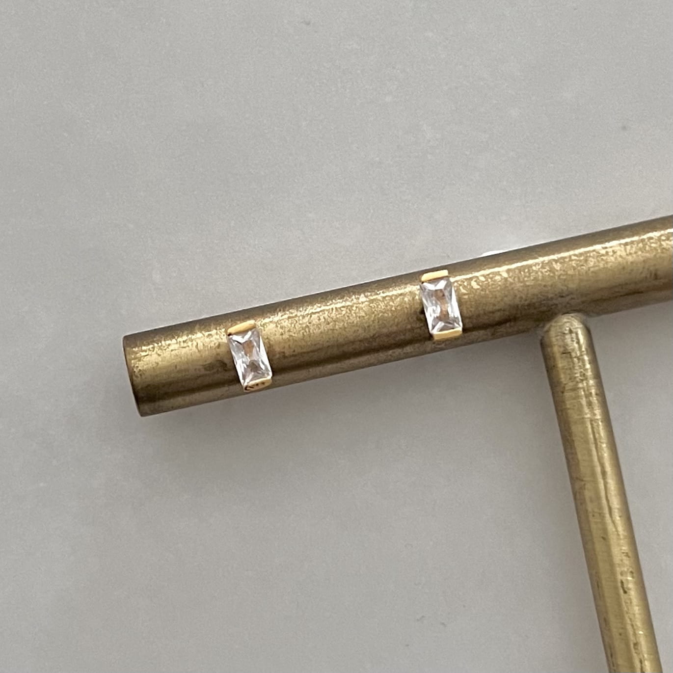 Srebrne pozłacane kolczyki z cyrkoniami PROSTOKĄT