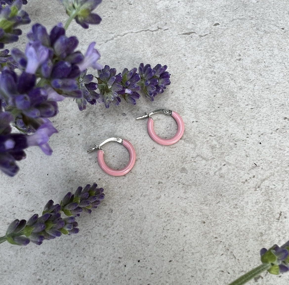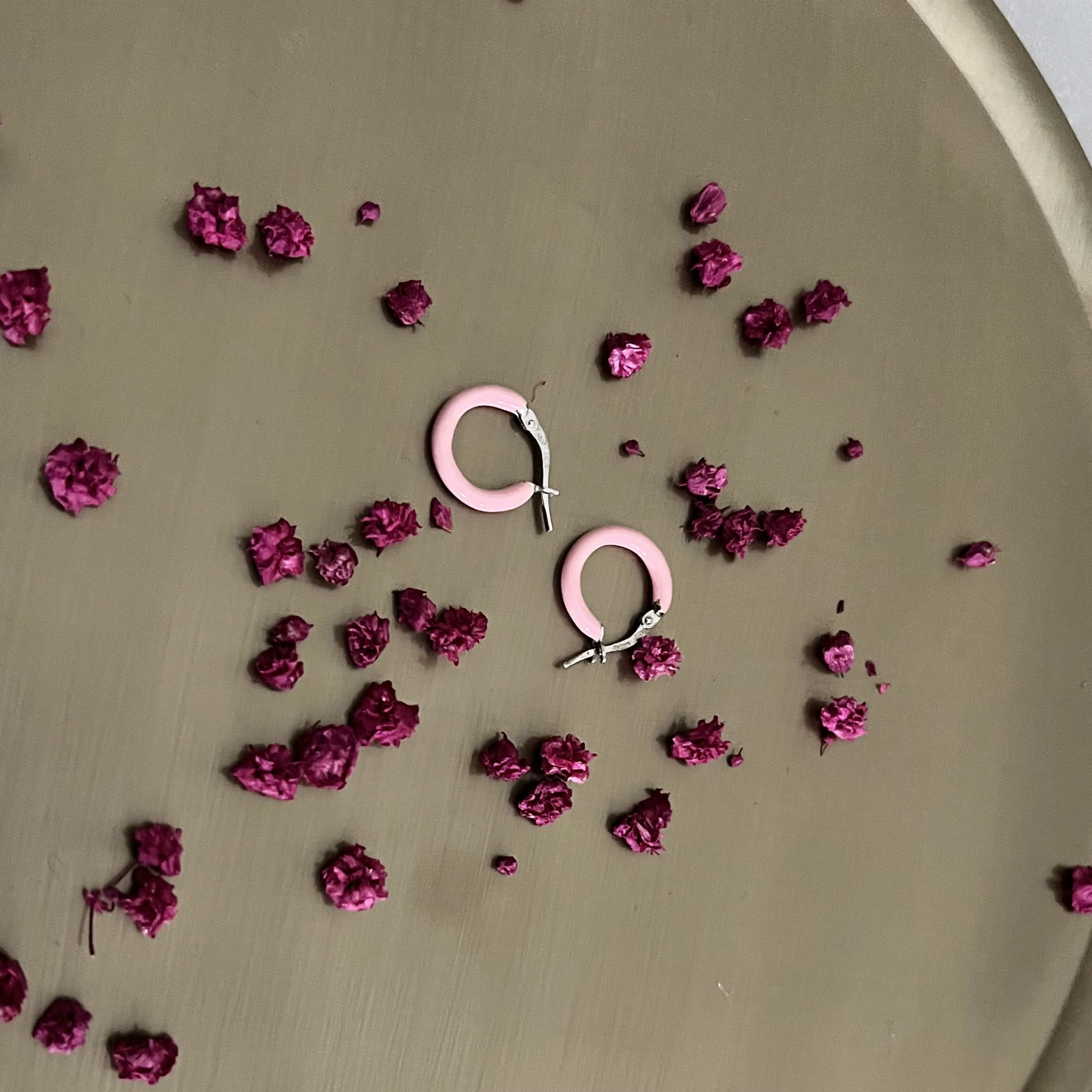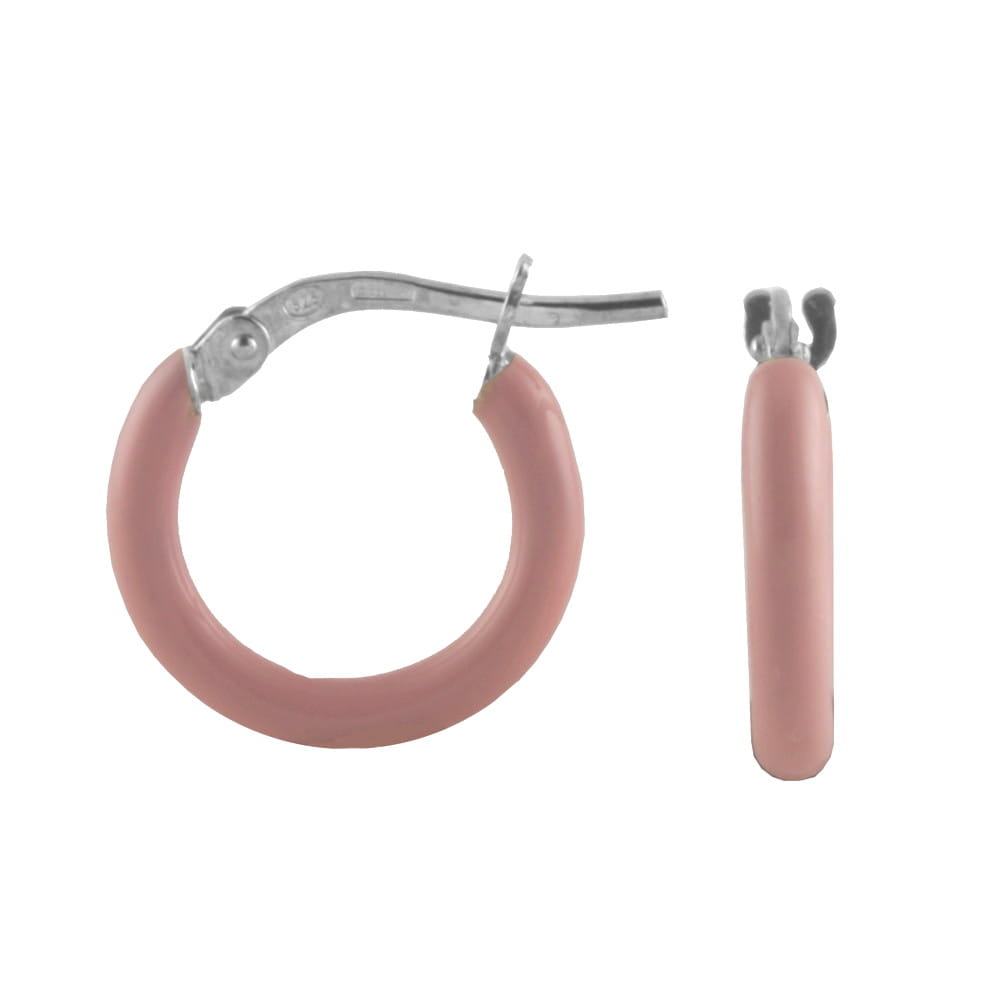 Srebrne kolczyki koła z różową emalią