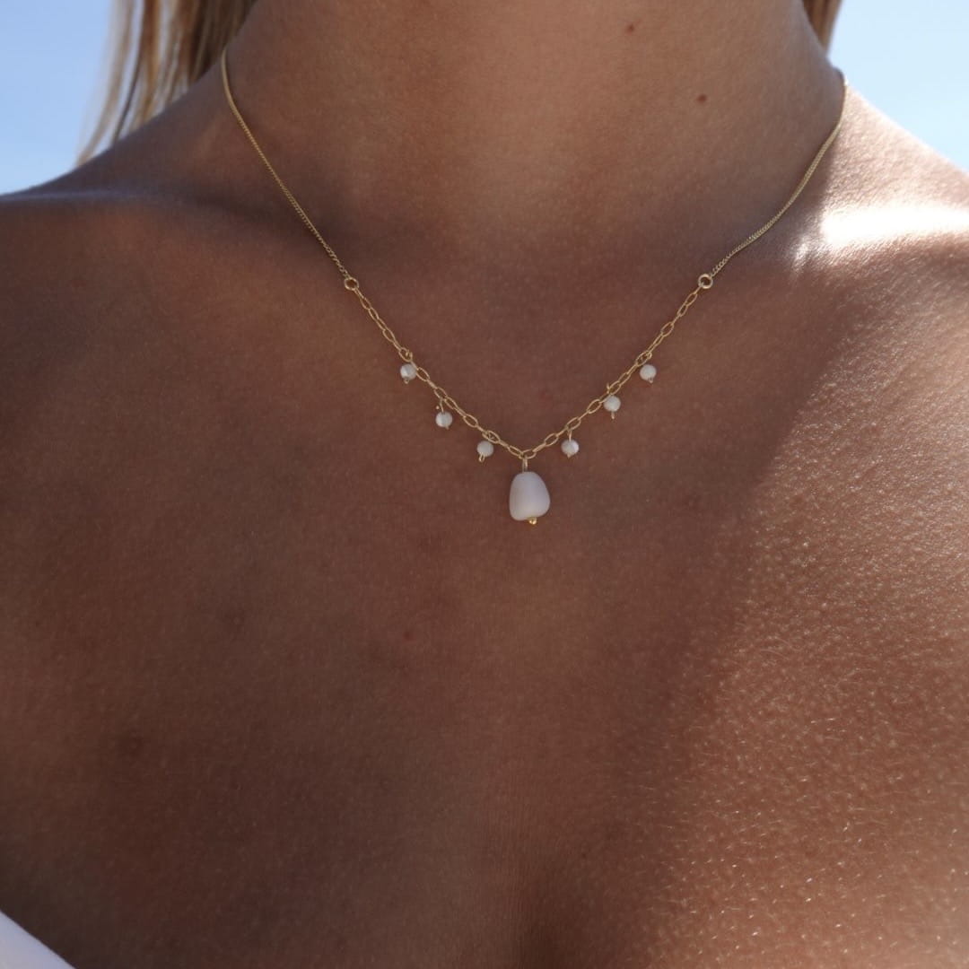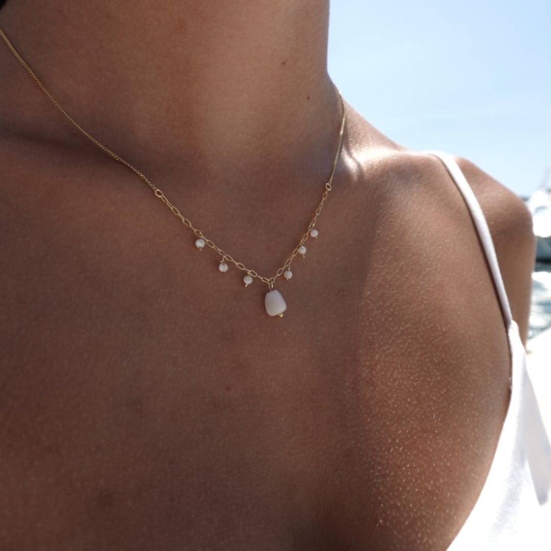 Srebrny lub pozłacany 24-karatowym złotem naszyjnik z naturalnymi kamieniami – opalem peruwiańskim, cytrynem i masą perłową. Idealny, gdy chcesz nosić biżuterię, która poprawia nastrój.