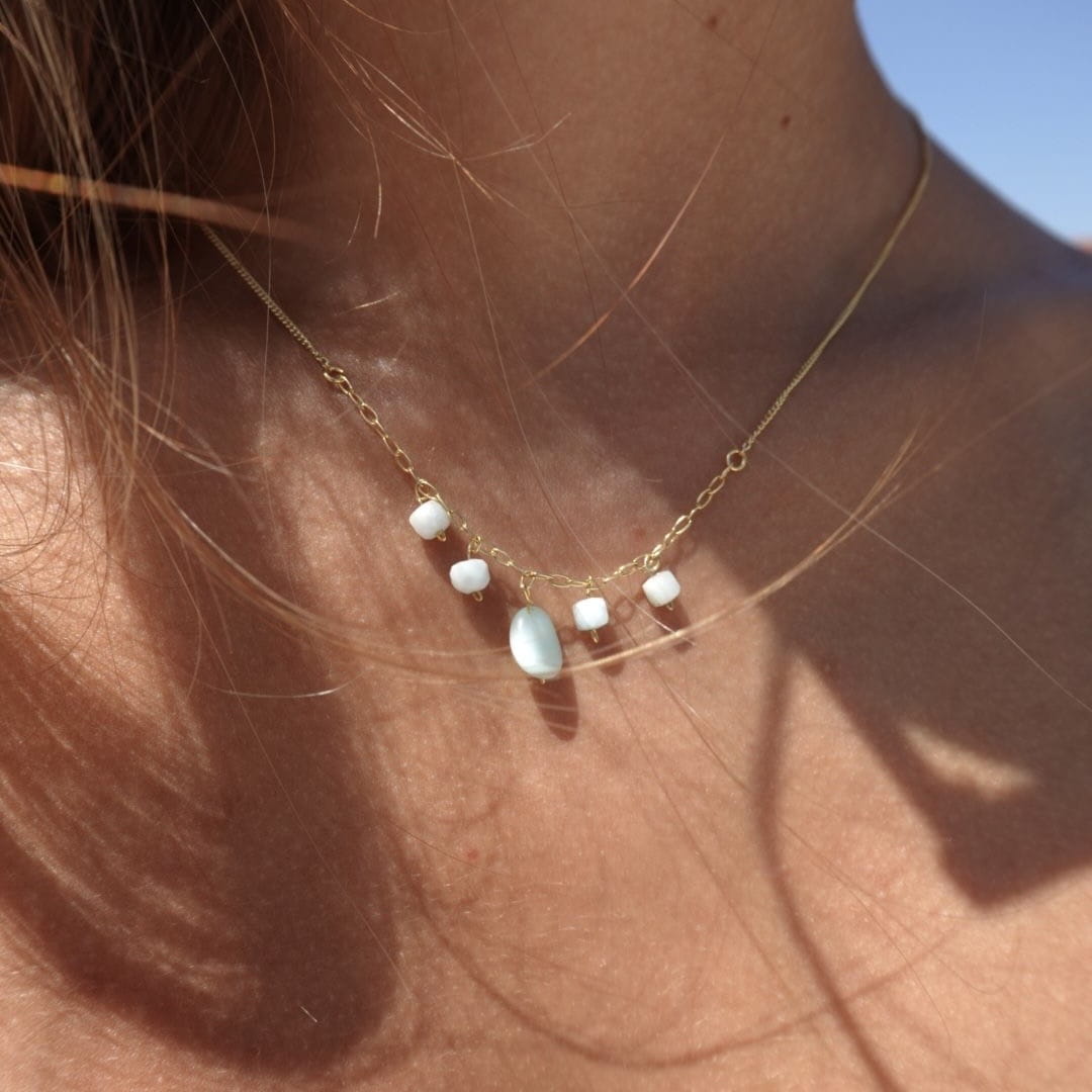TAJEMNICA to naszyjnik, który przyciąga wzrok swoją delikatnością i spokojem, jaki roztacza. Wykonany ze srebra próby 925, dostępny również w wersji pozłacanej 24-karatowym złotem, jest doskonałym wyborem dla kobiet, które cenią symbolikę kamieni naturalnych.