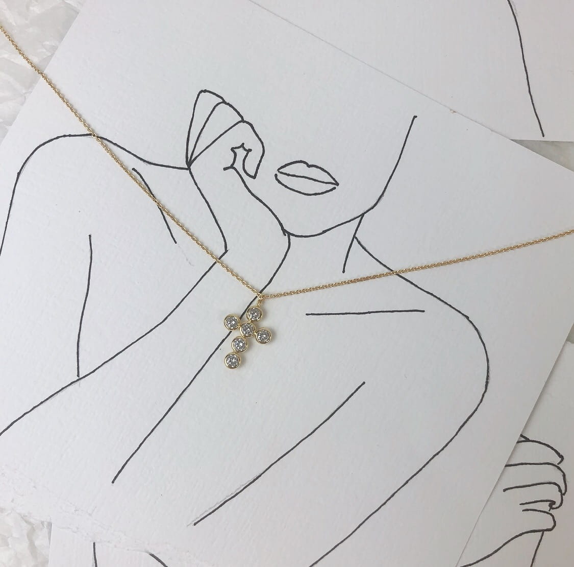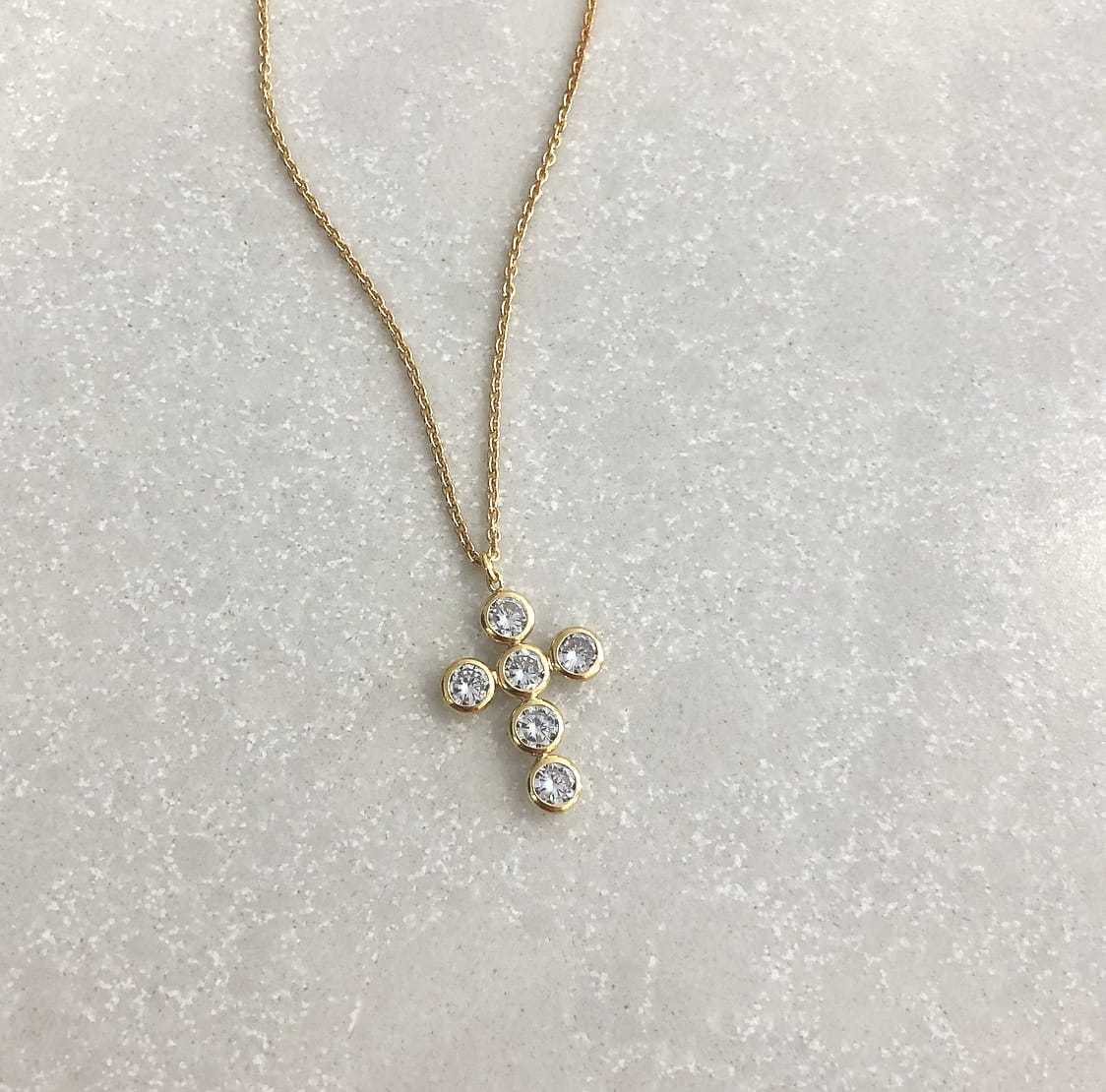 Srebrny pozłacany naszyjnik z krzyżem i cyrkoniami