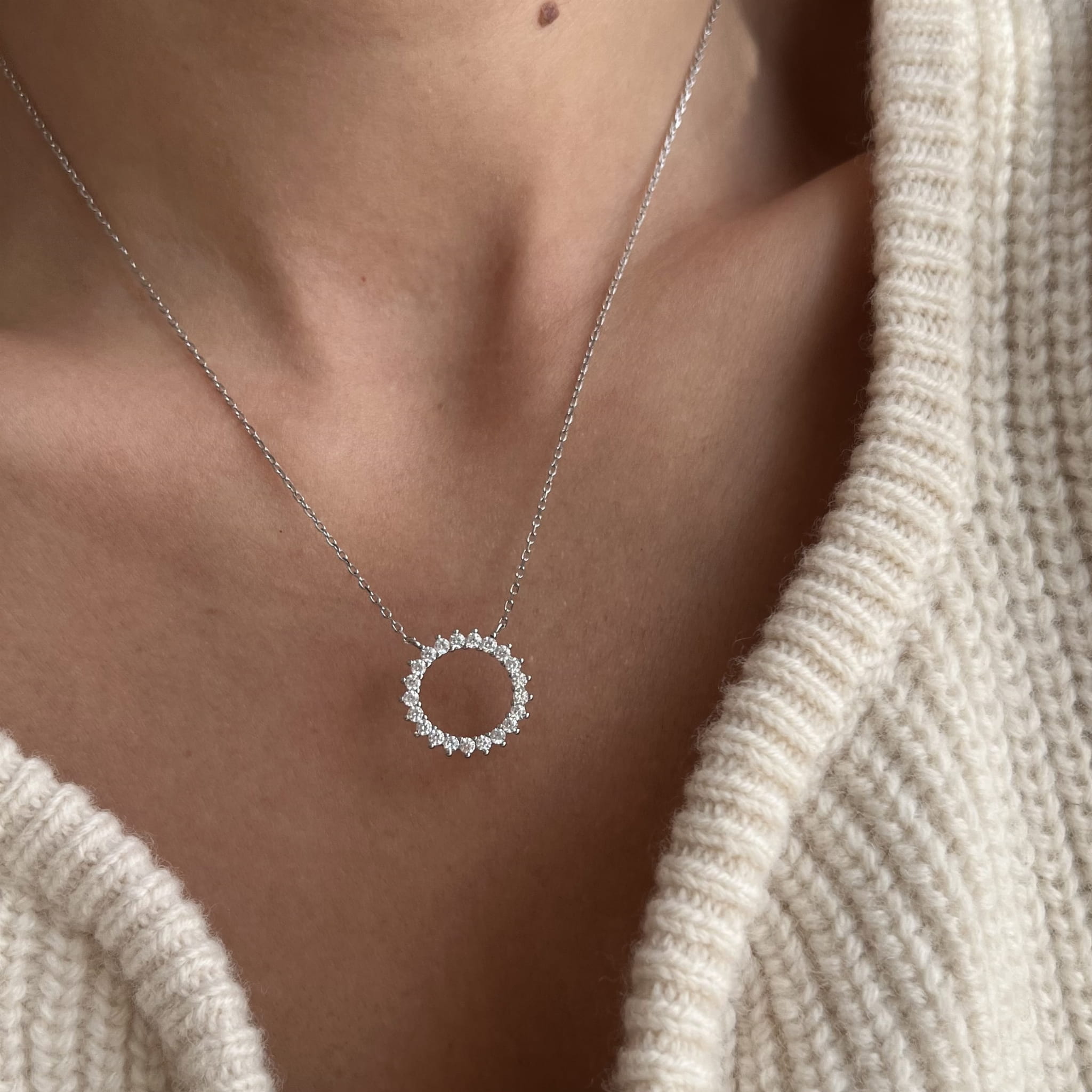Srebrny naszyjnik z cyrkoniami KOŁO