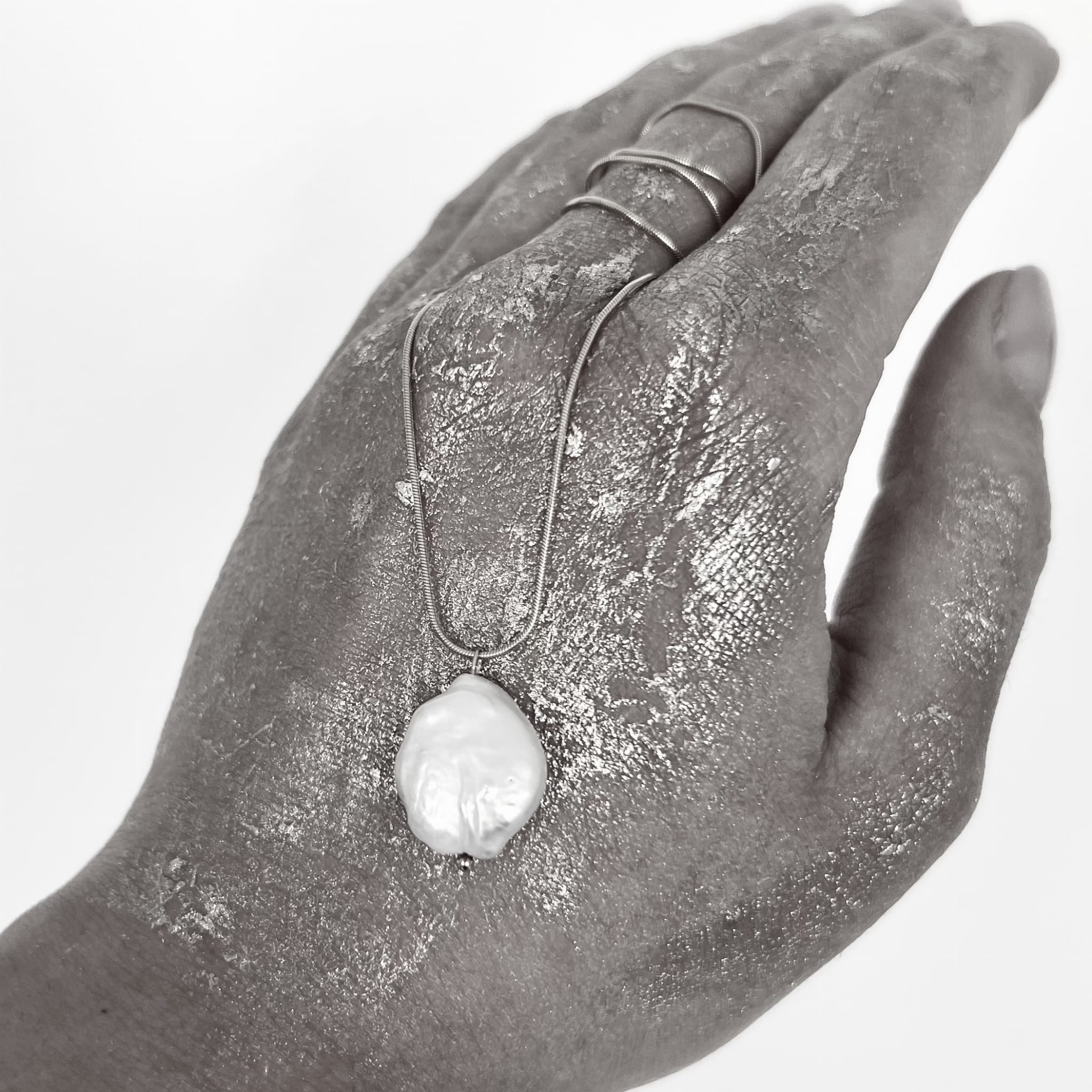 Srebrny naszyjnik z perłą barokową