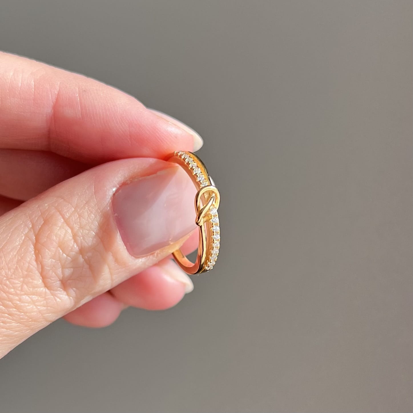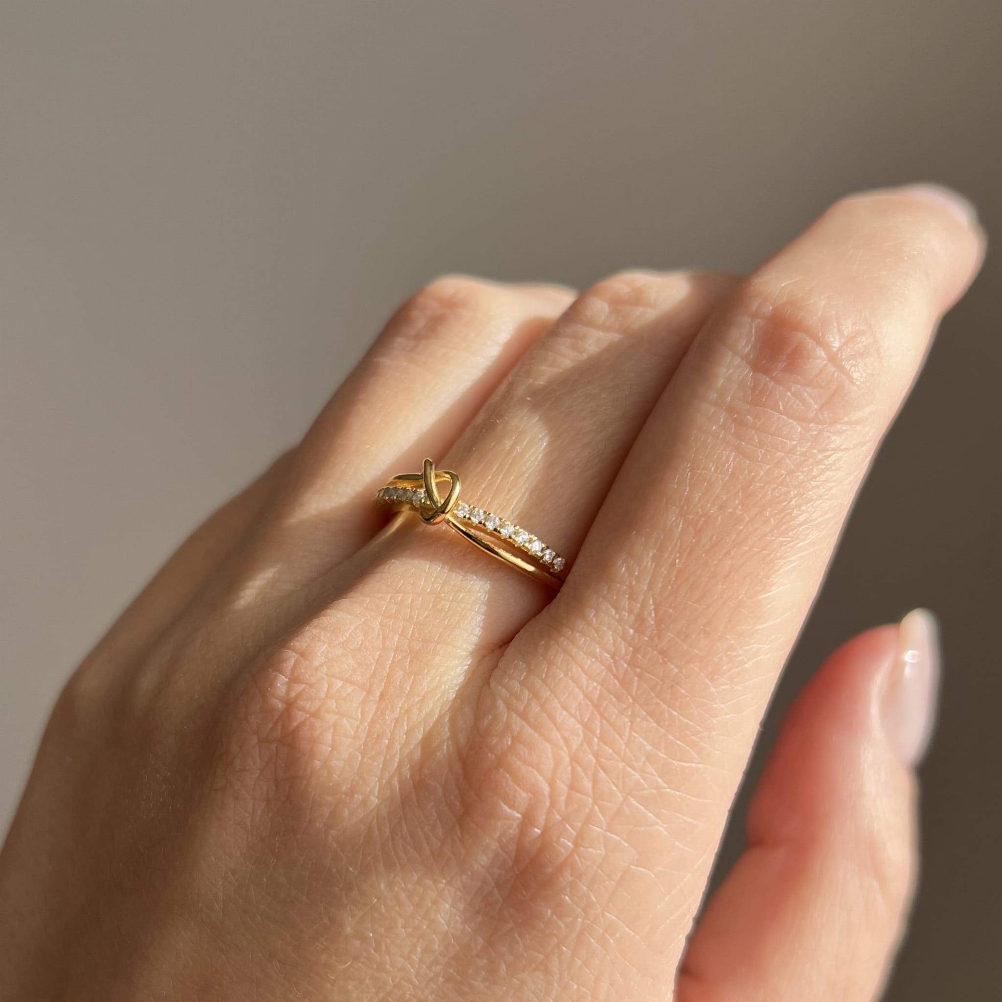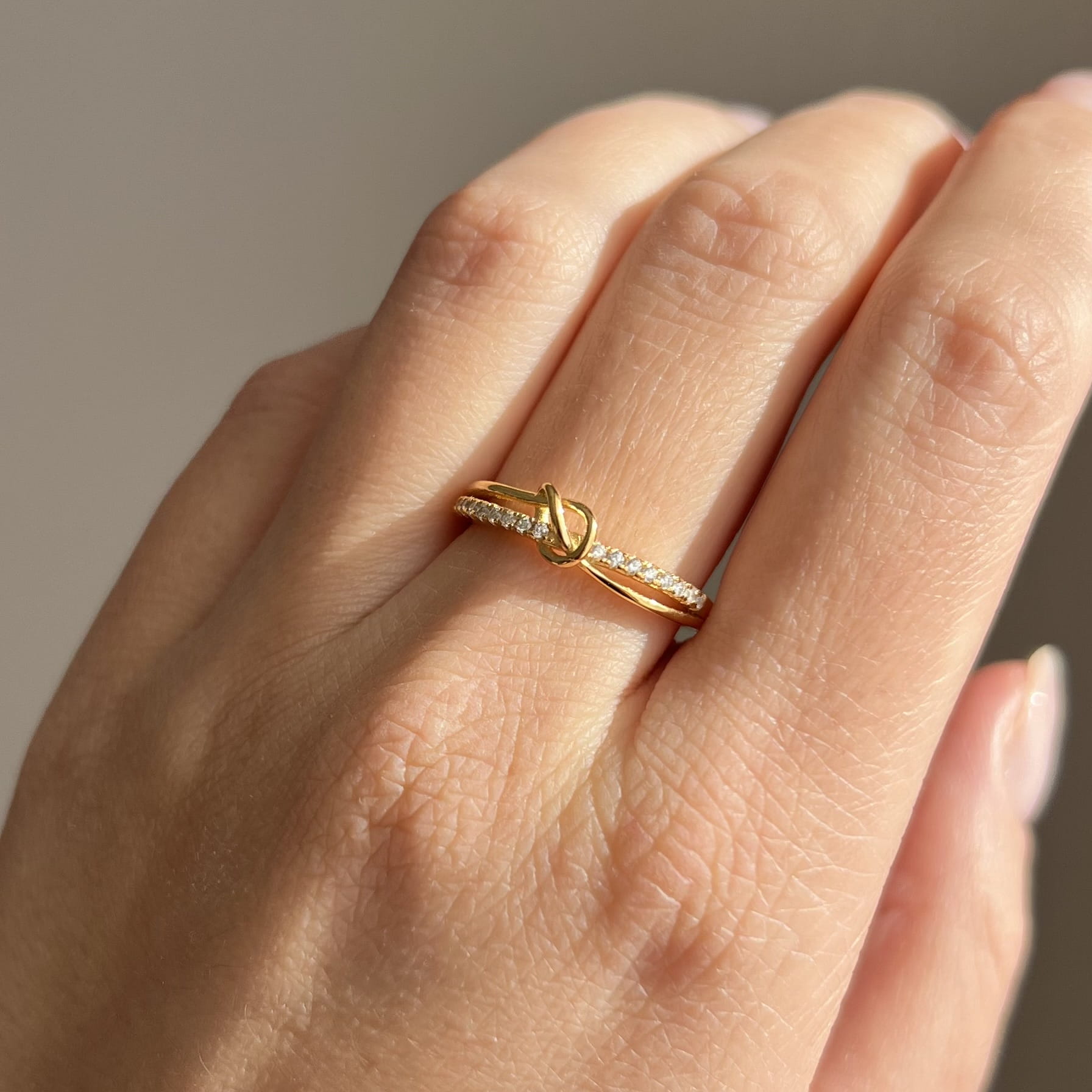 Pozłacany pierścionek ze srebra 925 z eleganckim motywem supełka. Minimalizm z przesłaniem.