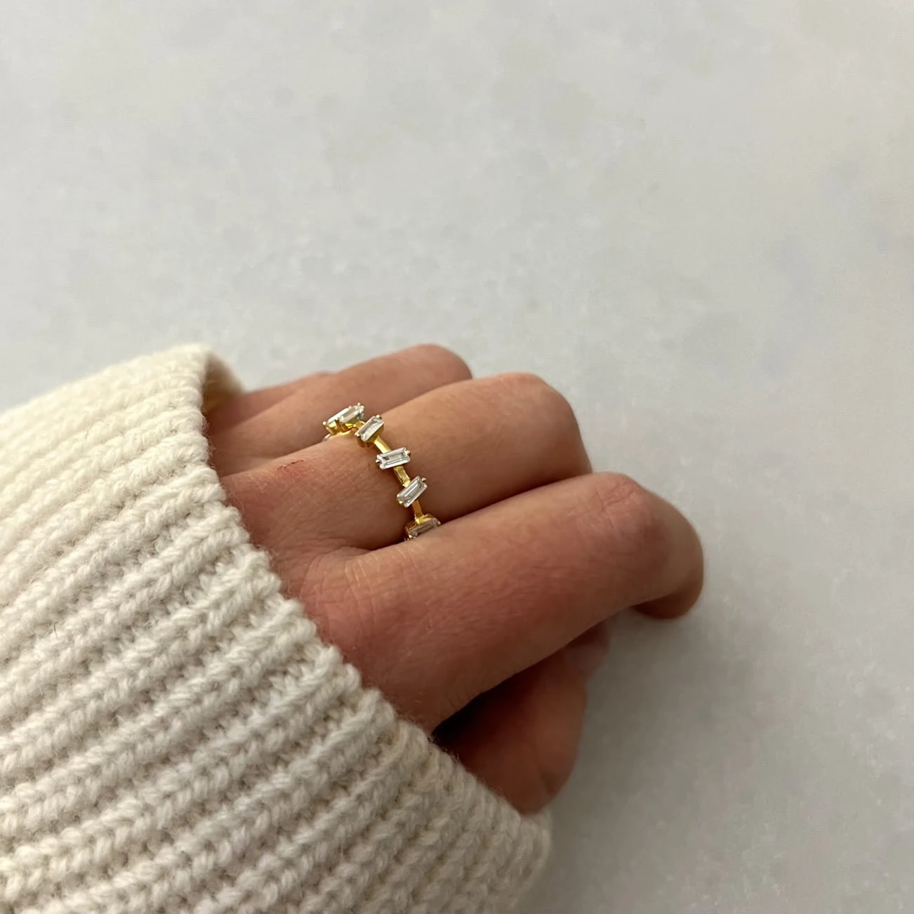 Pierścionek LUMA świetnie wygląda noszony samodzielnie jako subtelny, ale zauważalny akcent. Możesz również zestawić go z innymi delikatnymi pierścionkami, tworząc nowoczesną i spójną kompozycję. To biżuteria dla kobiet, które lubią dodatki eleganckie, ale jednocześnie wygodne i uniwersalne. Dodatkowym atutem jest fakt, że model nie zawiera niklu, co wpływa na komfort codziennego noszenia.