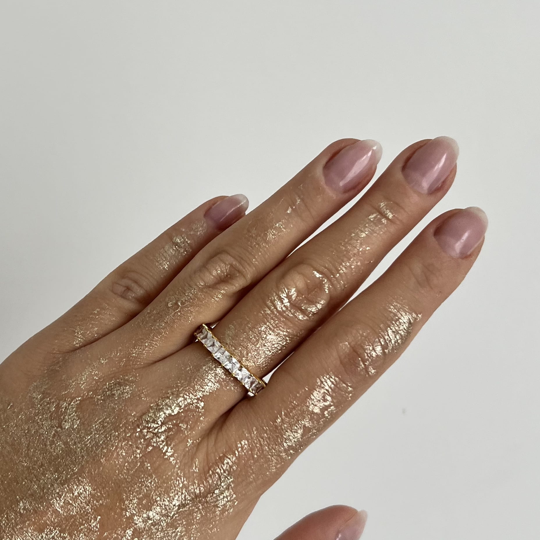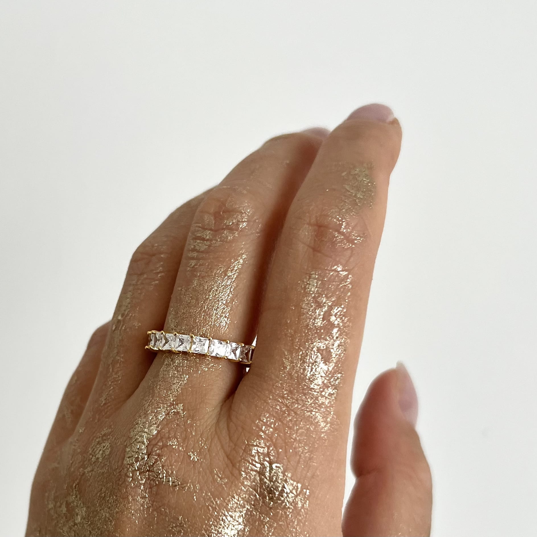 Srebrny pozłacany pierścionek obrączka z cyrkoniami kwadrat wykonany w całości ze srebrna