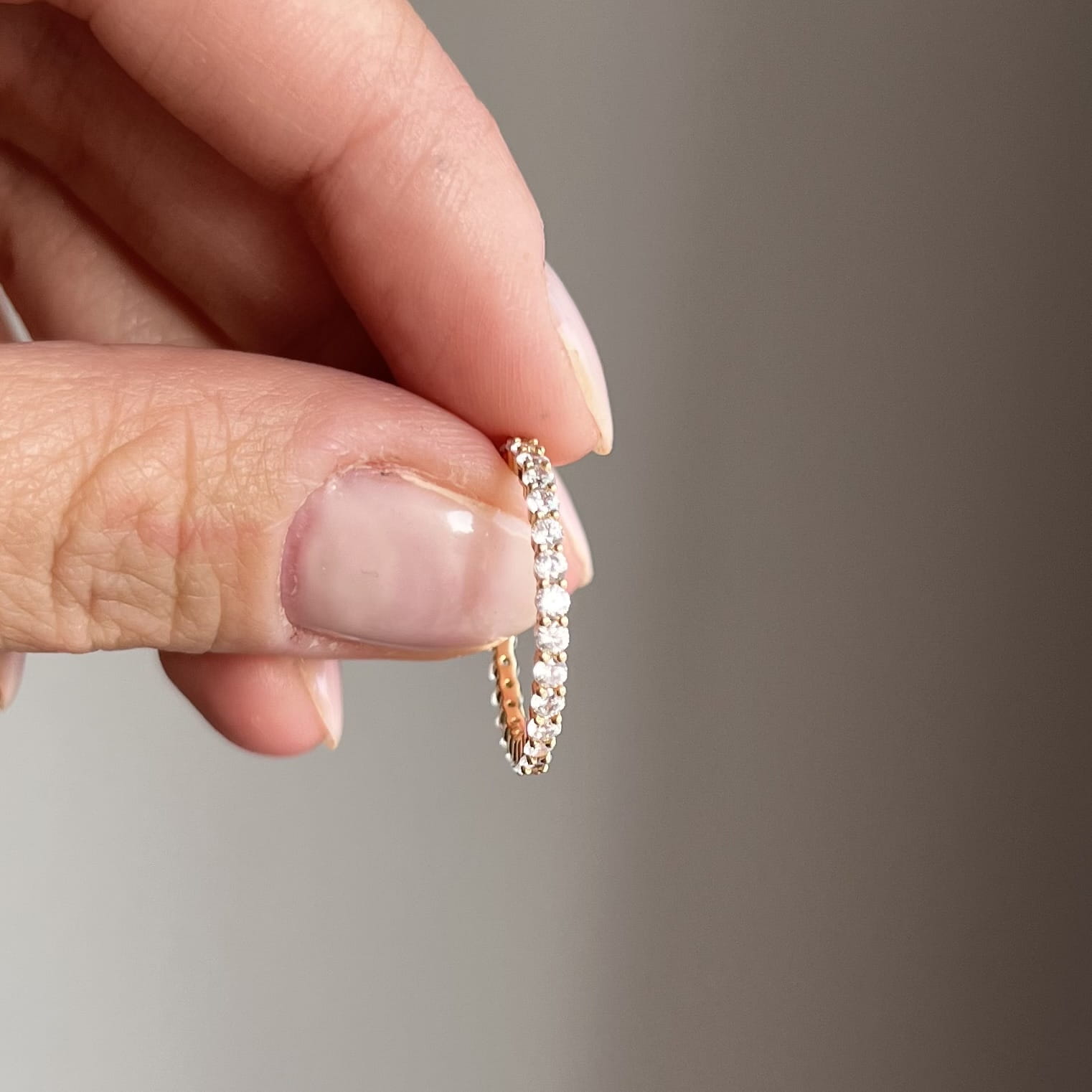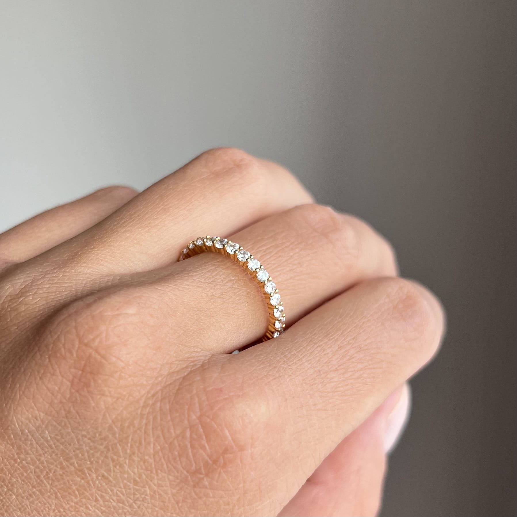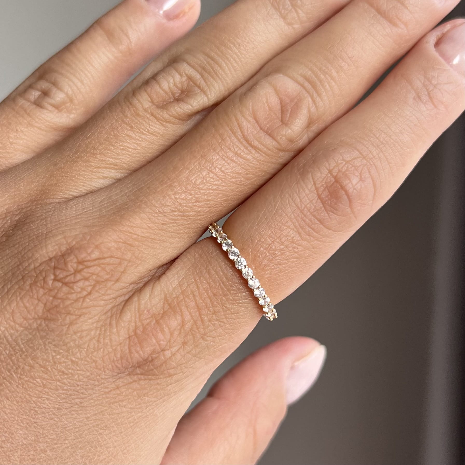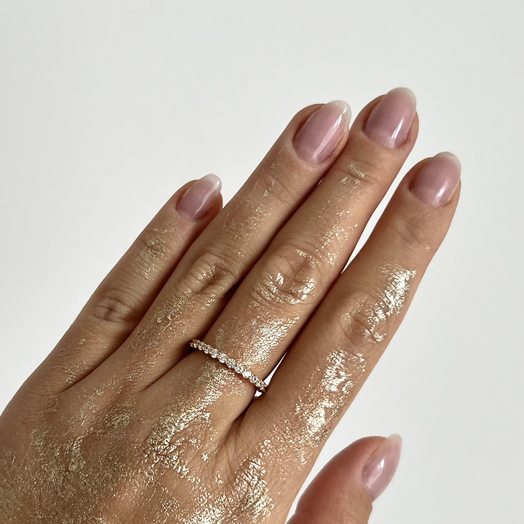 Pozłacany pierścionek obrączka z cyrkoniami to ponadczasowy i elegancki dodatek, który zachwyca swoim subtelnym blaskiem. Wykonany ze srebra próby 925 i pokryty warstwą 24-karatowego złota, łączy minimalistyczny design z luksusowym wykończeniem. Cyrkonie precyzyjnie osadzone w obrączce pięknie odbijają światło, dodając jej wyjątkowego charakteru. Szerokość 2,15 mm sprawia, że pierścionek wygląda delikatnie i stylowo na palcu. Dzięki hipoalergicznej formule, bez niklu, jest bezpieczny dla skóry i komfortowy w noszeniu. Zapakowany w ozdobne pudełko i torebkę, jest doskonałym pomysłem na prezent lub wyjątkowym dodatkiem do codziennej stylizacji.