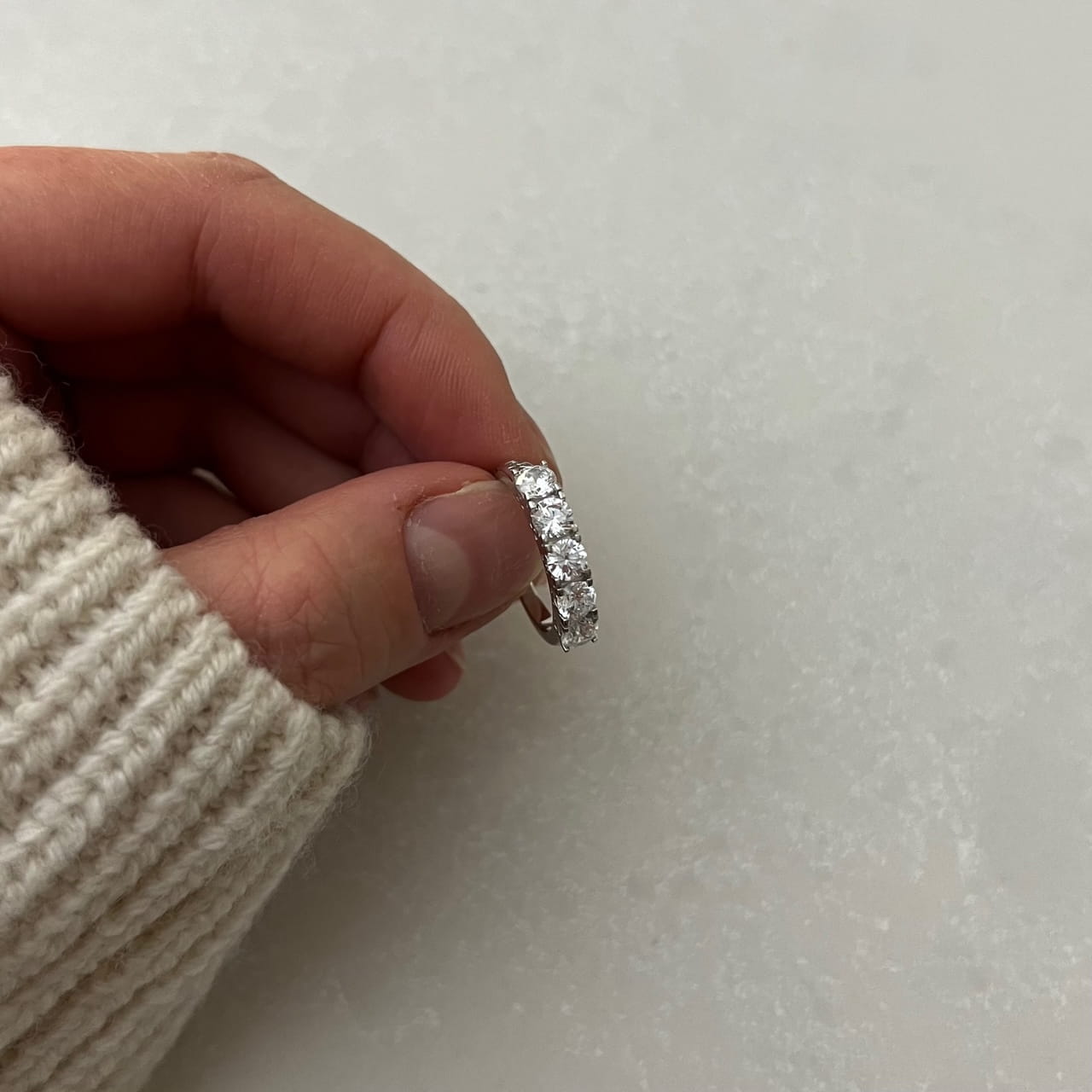 Srebrny pierścionek obrączka z cyrkoniami pół