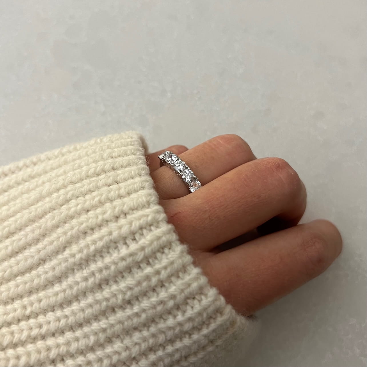 Srebrny pierścionek obrączka z cyrkoniami wykonany w całości ze srebrna