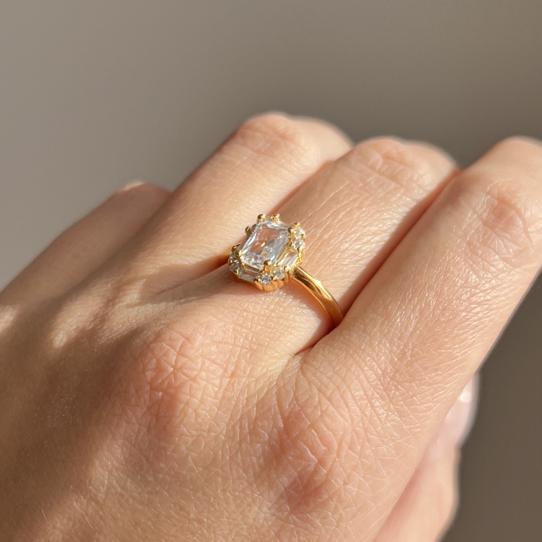 Srebrny pozłacany pierścionek z cyrkoniami SZYK