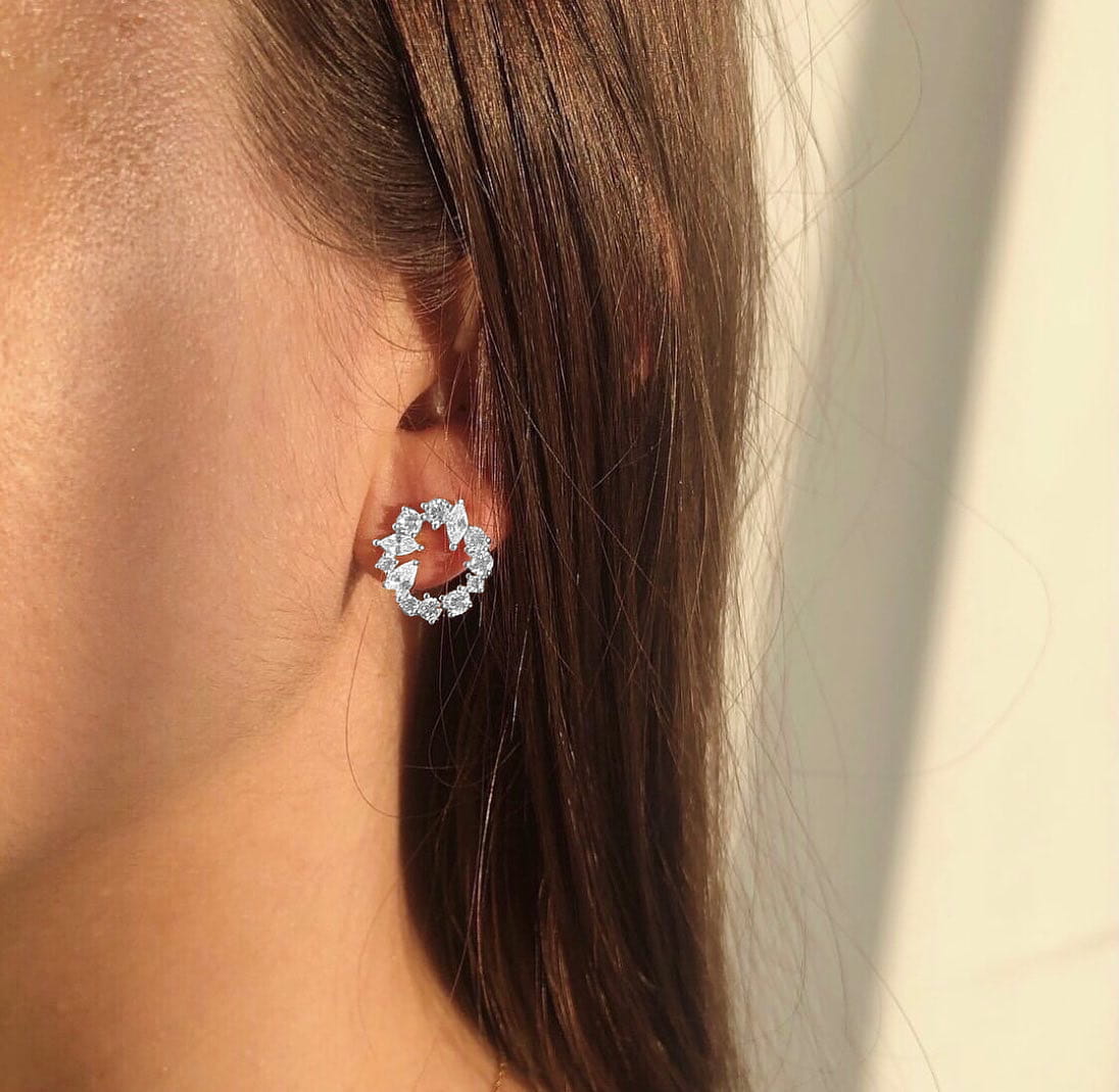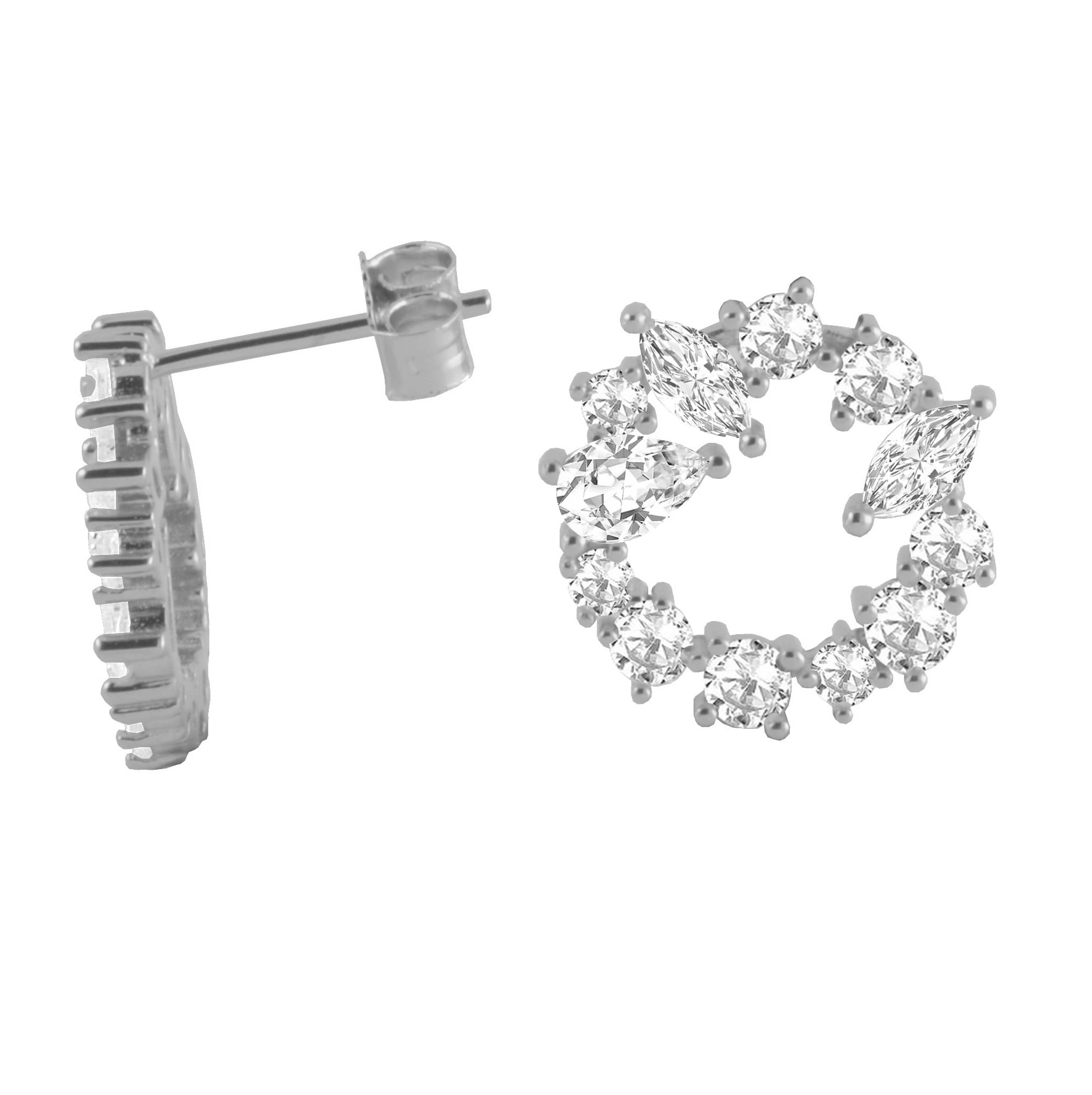 Srebrne kolczyki koła z cyrkoniami RÓŻA