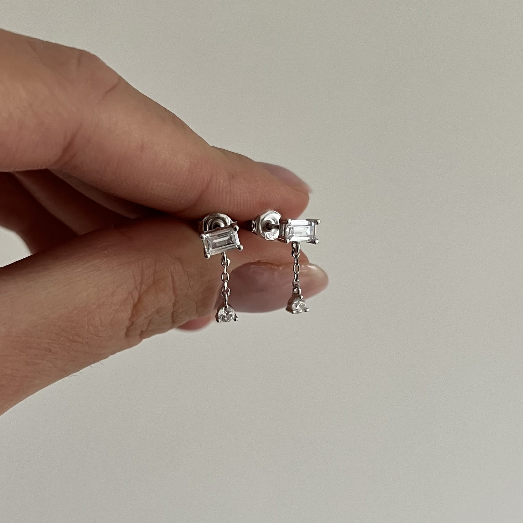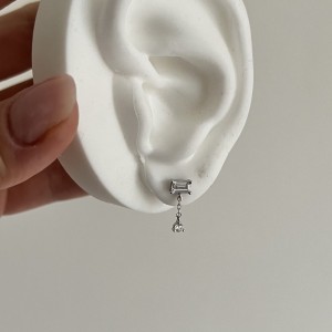Srebrne kolczyki z cyrkoniami z łańcuszkiem