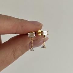 Srebrne pozłacane kolczyki z cyrkoniami z łańcuszkiem