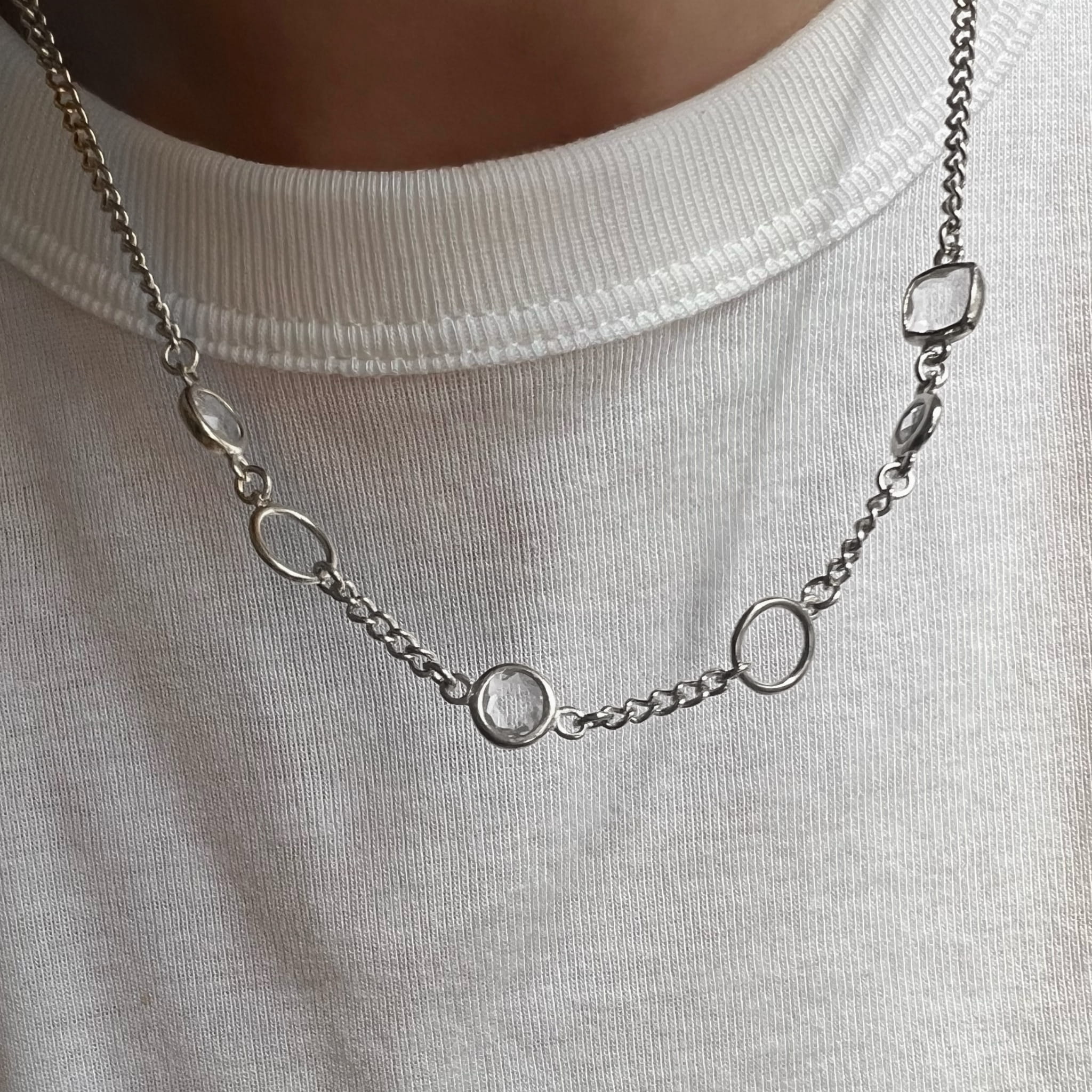 Srebrny naszyjnik z białą cyrkonią
