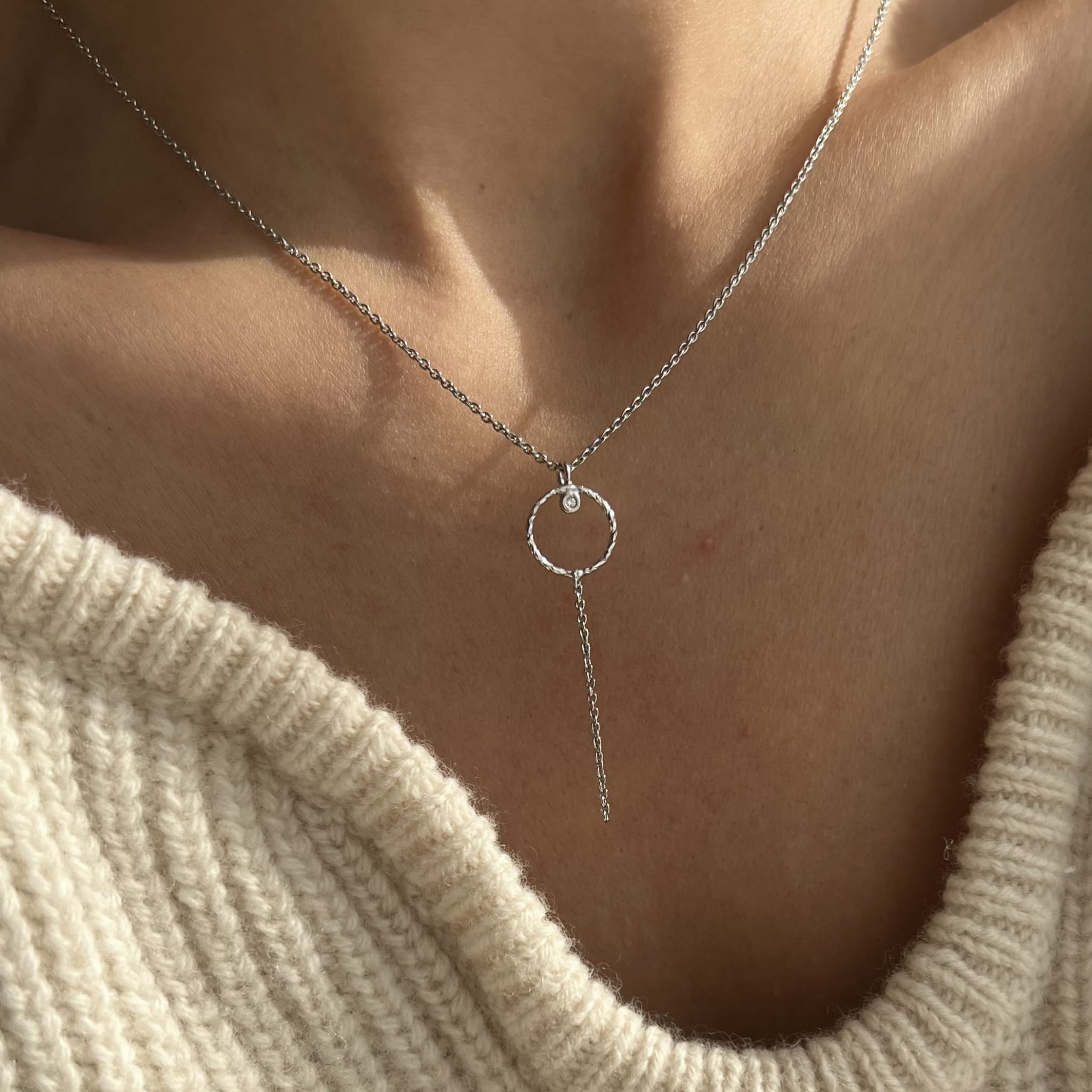 Srebrny naszyjnik koło z cyrkonią i łańcuszkiem