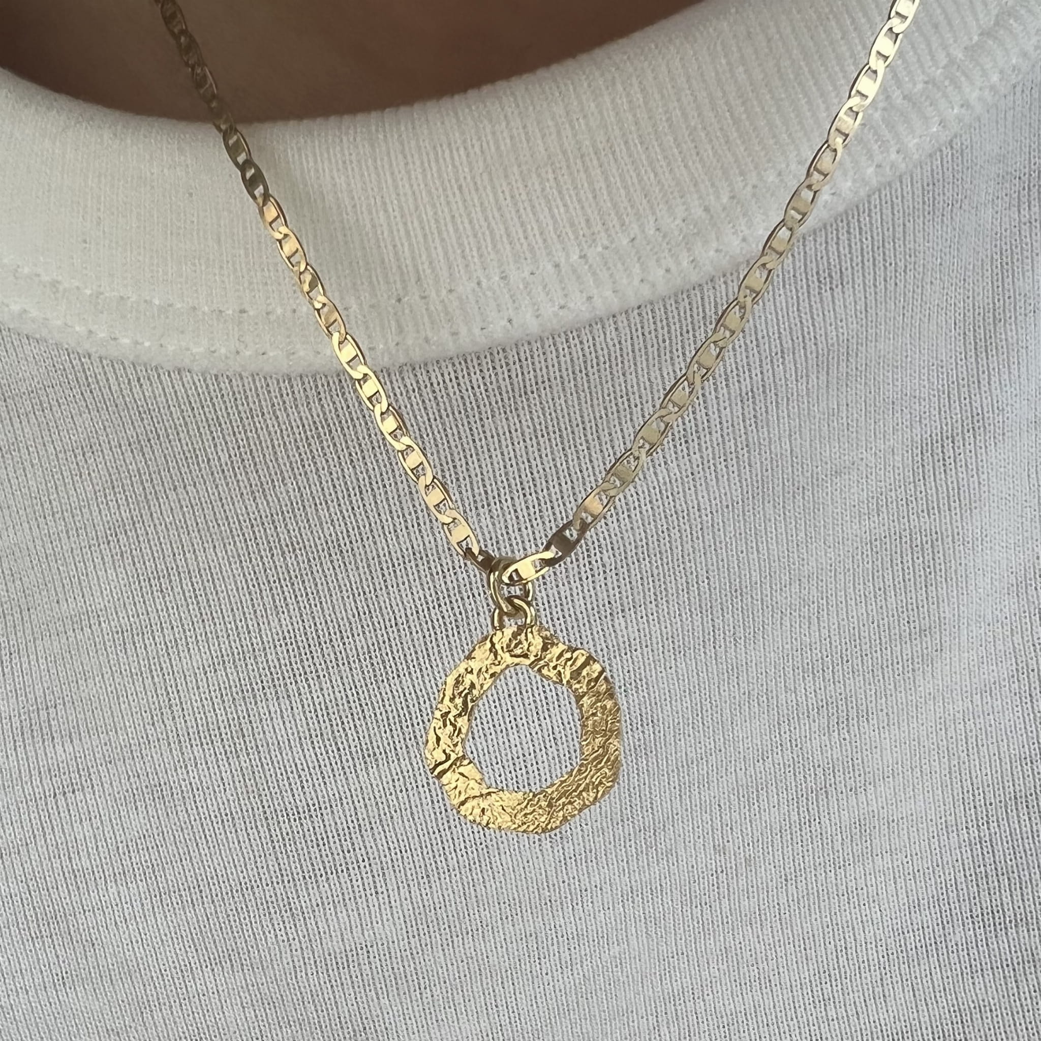 Srebrny pozłacany naszyjnik z blaszką fakturowaną wykonany w całości ze srebrna