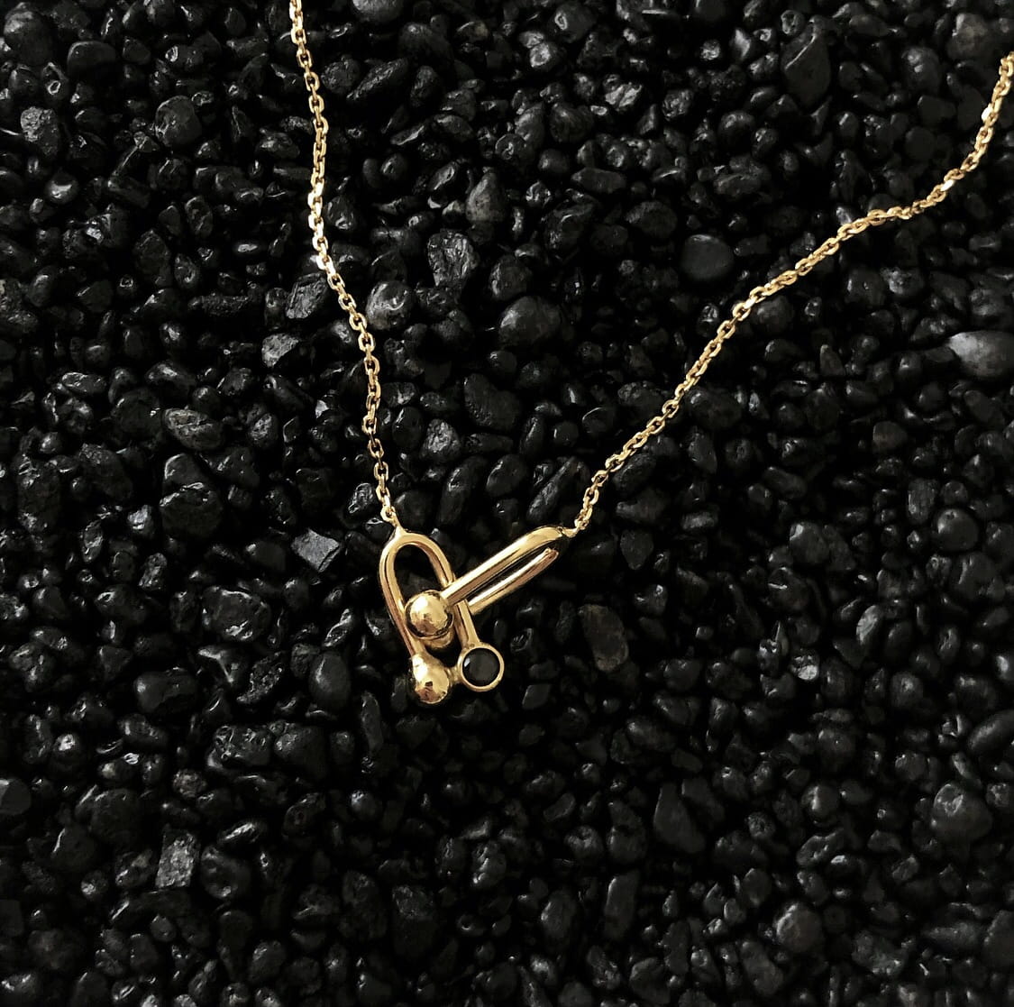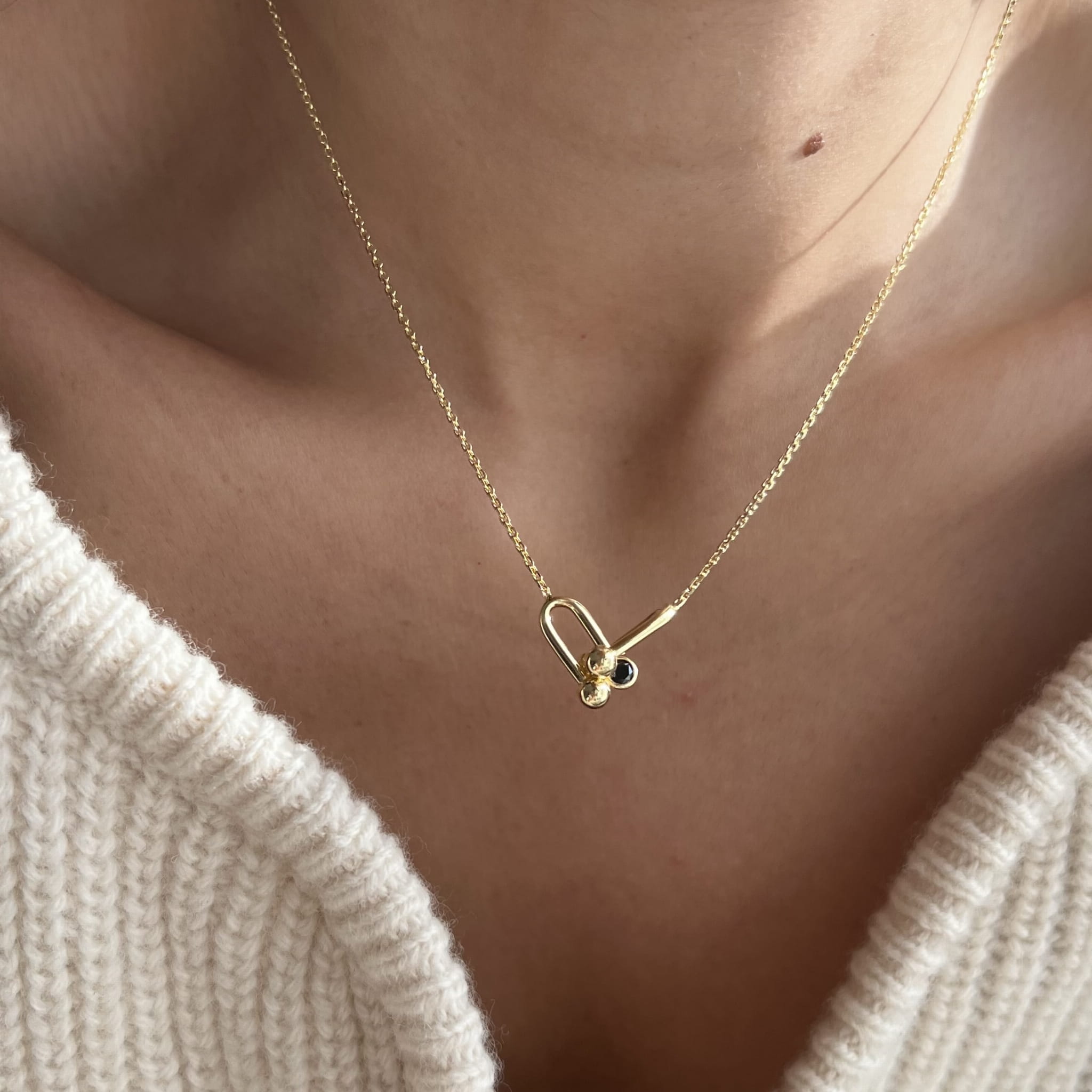 Srebrny pozłacany naszyjnik z cyrkonią czarną