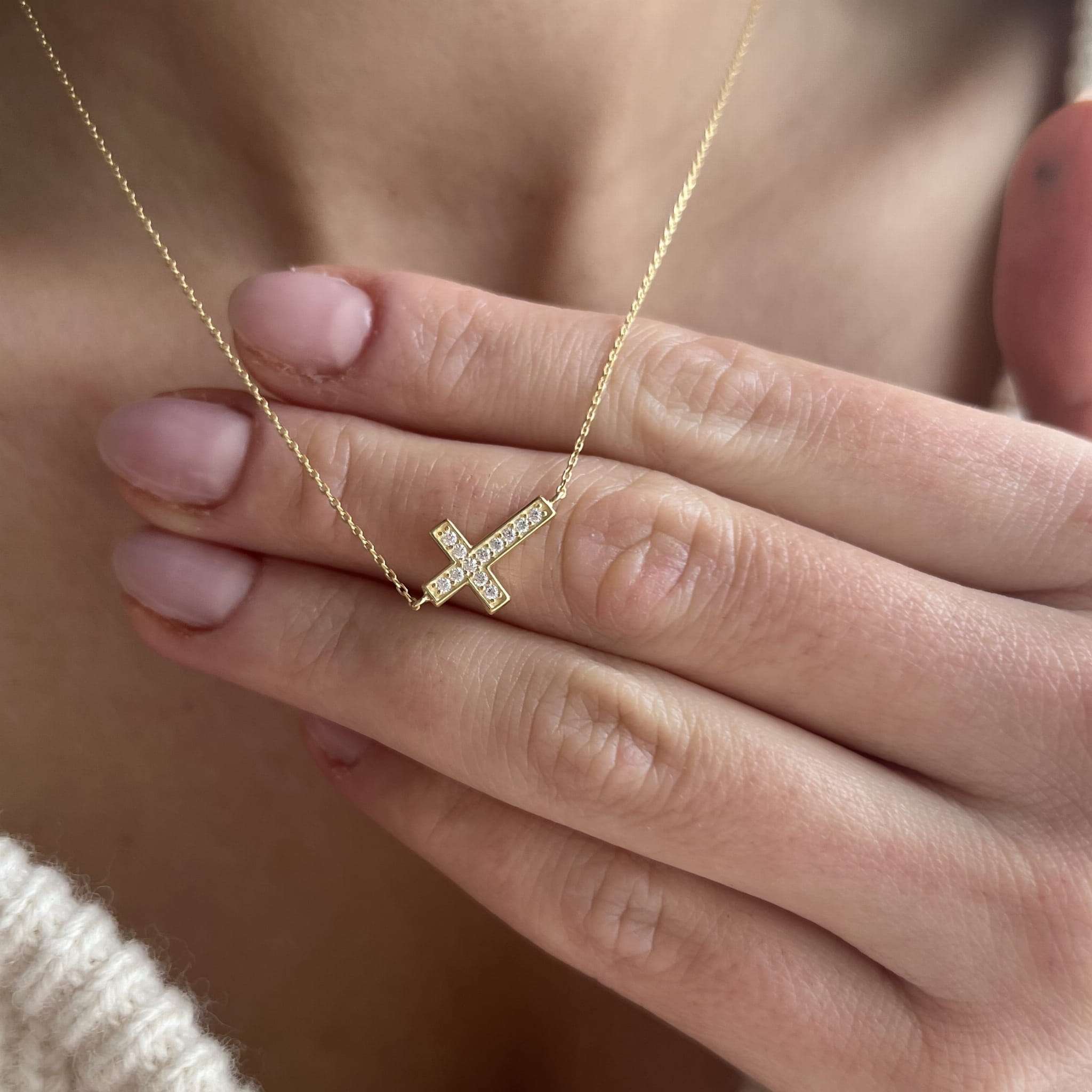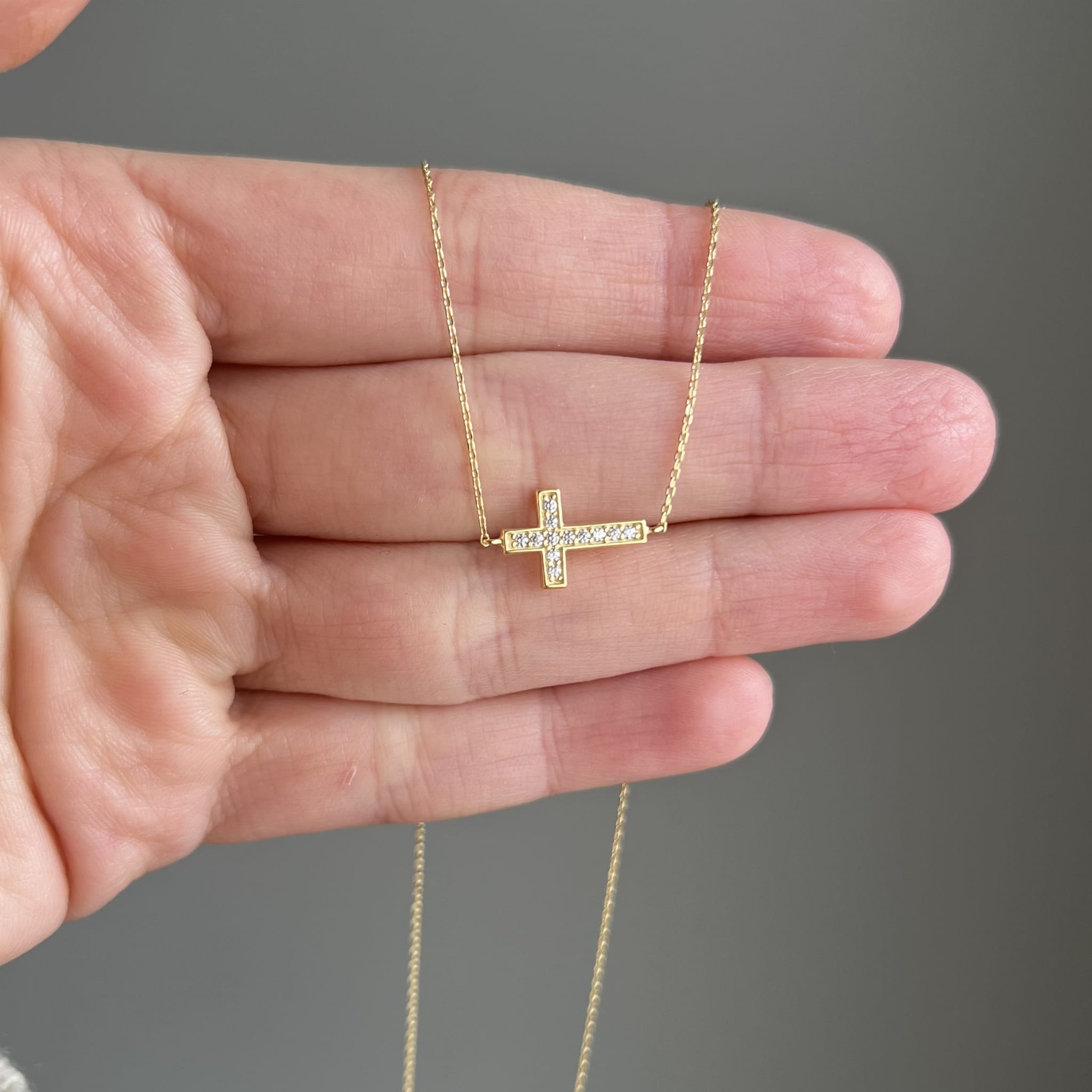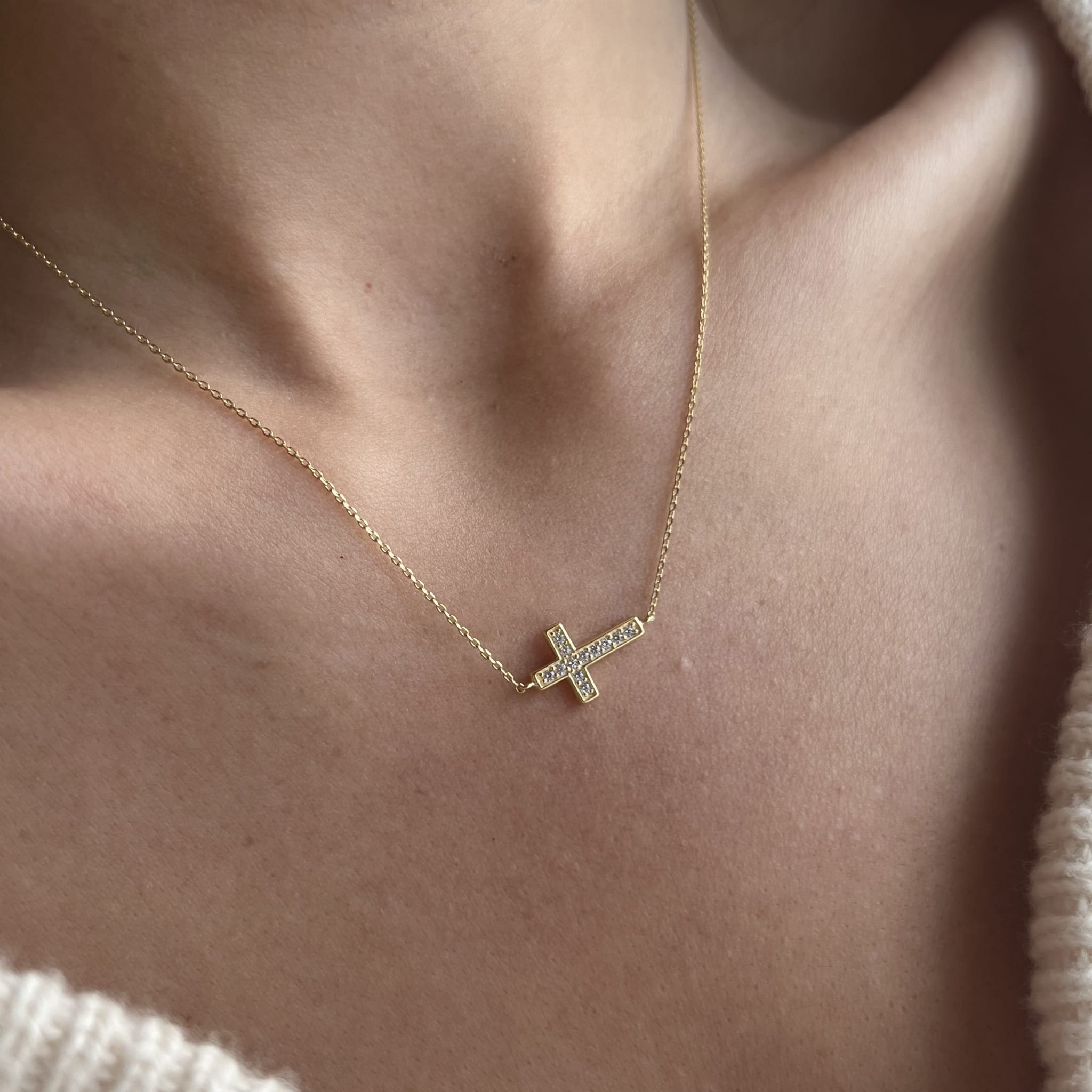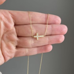 Złoty naszyjnik krzyżyk z cyrkoniami 333