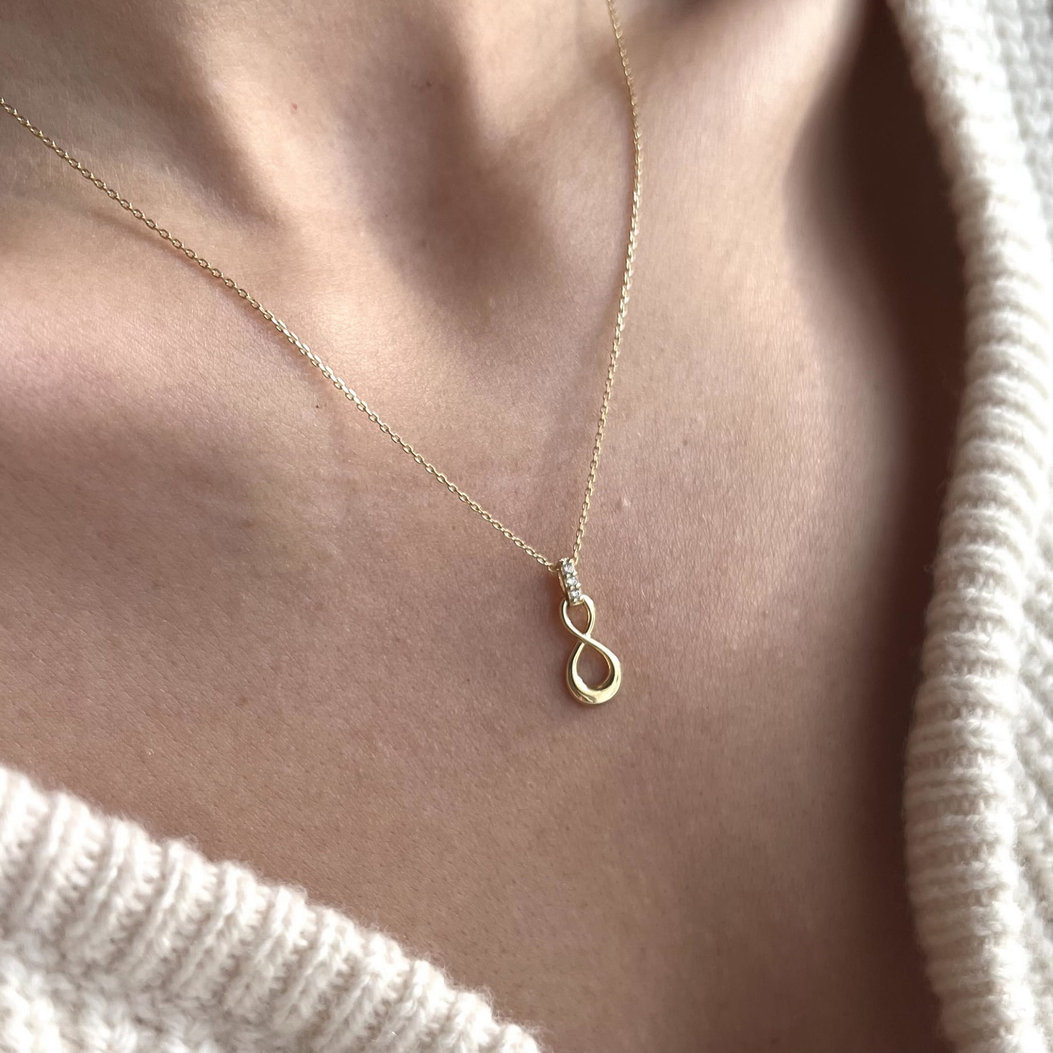 Złoty naszyjnik nieskończoność z cyrkoniami 333