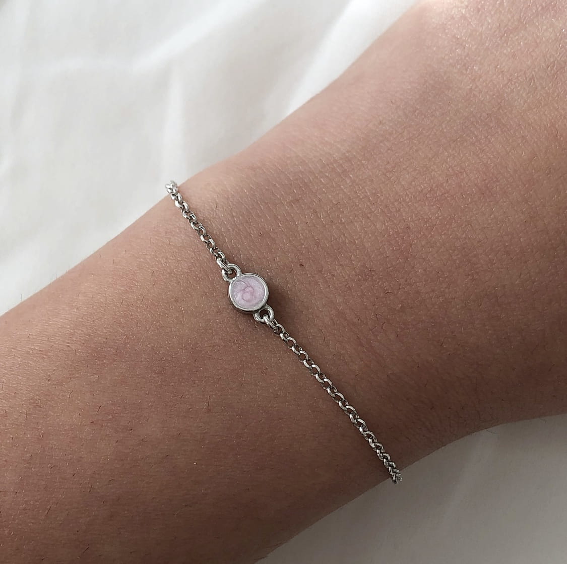 Srebrna bransoletka koło z różową emalią