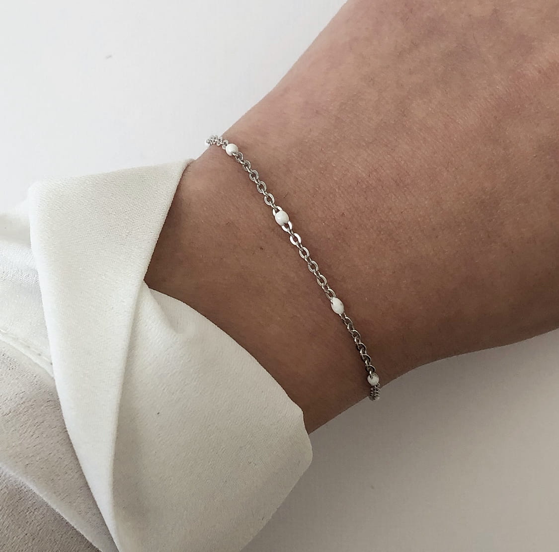 Srebrna bransoletka z białą emalią