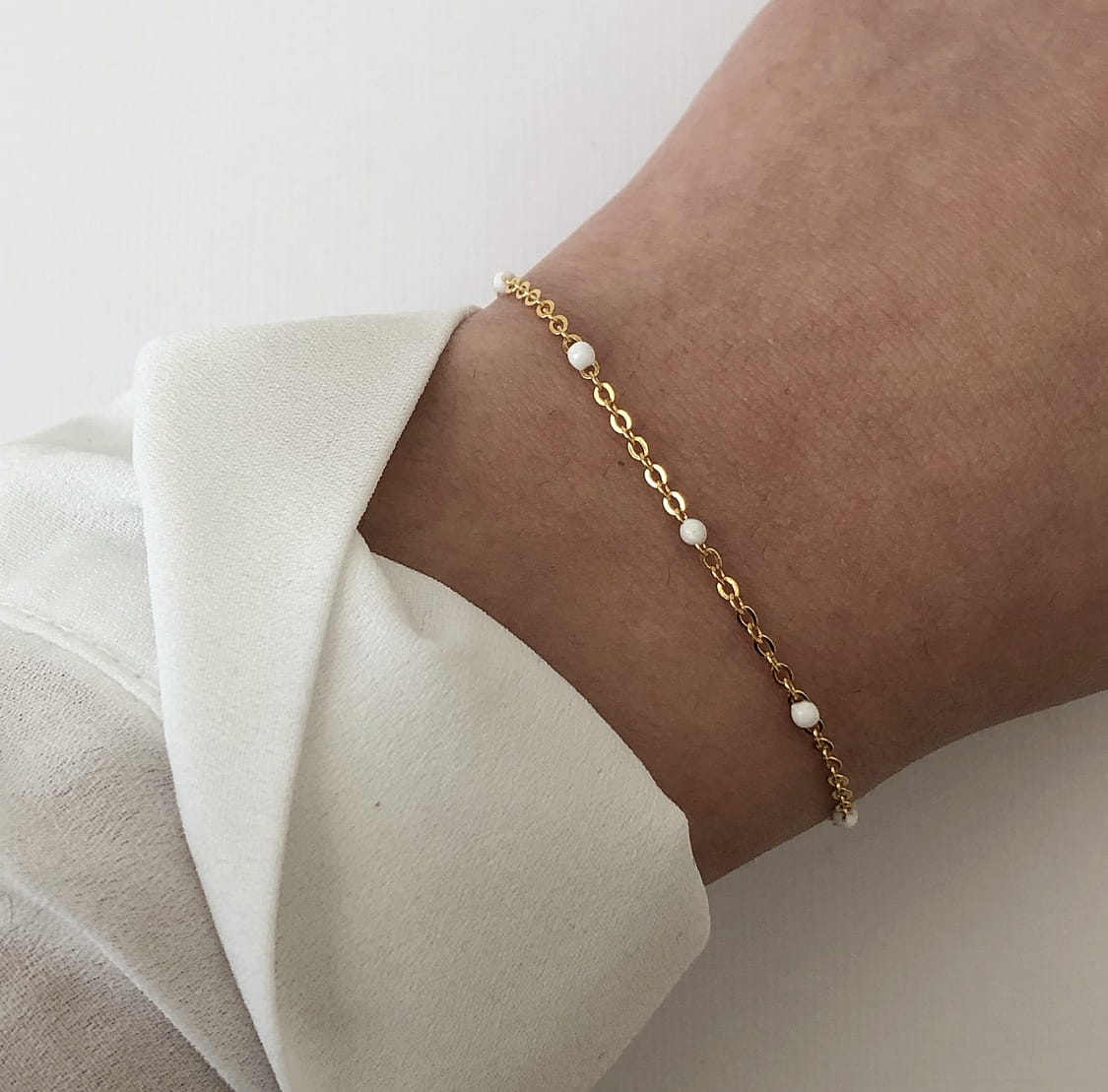 Srebrna pozłacana bransoletka z białą emalią
