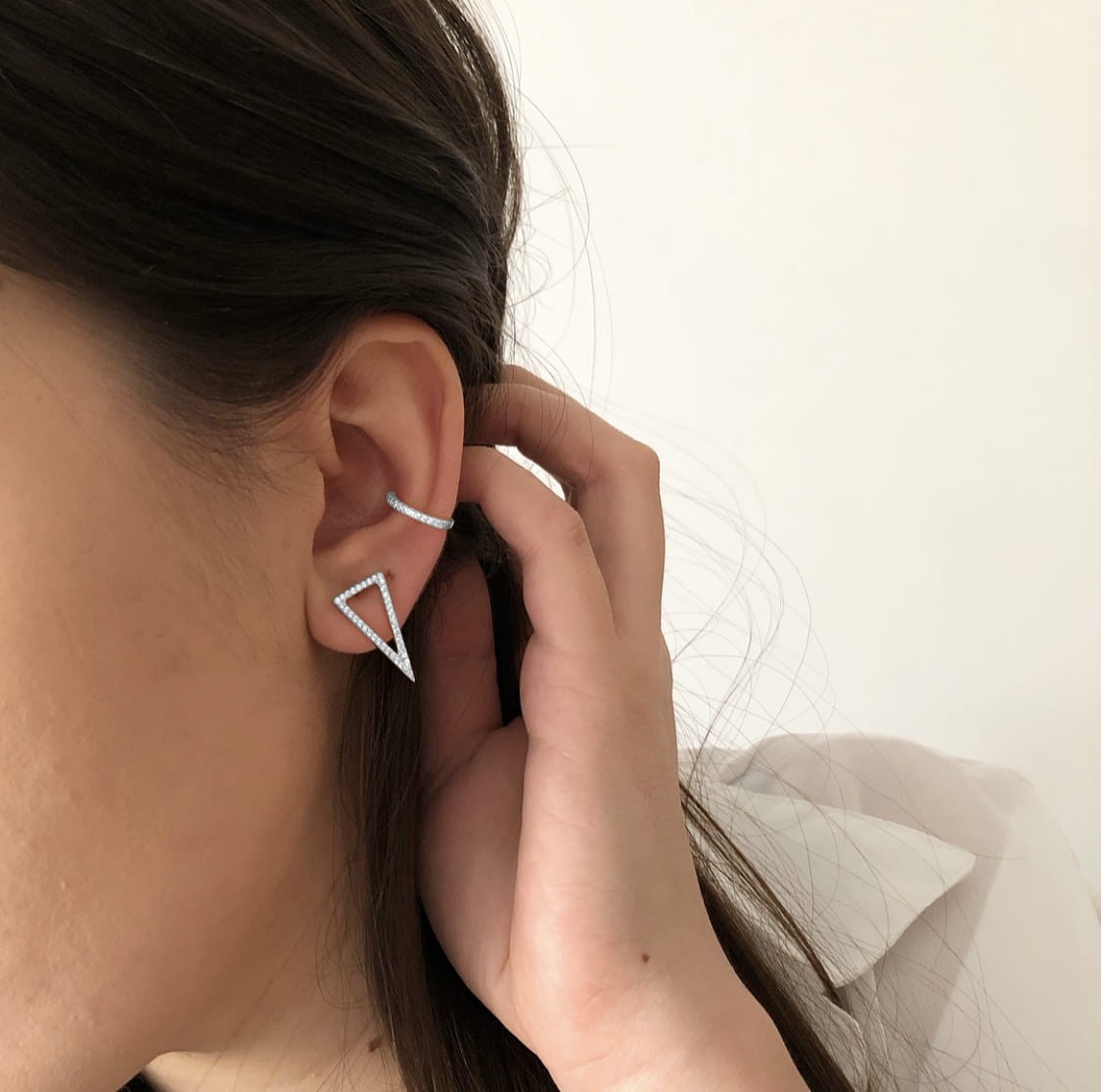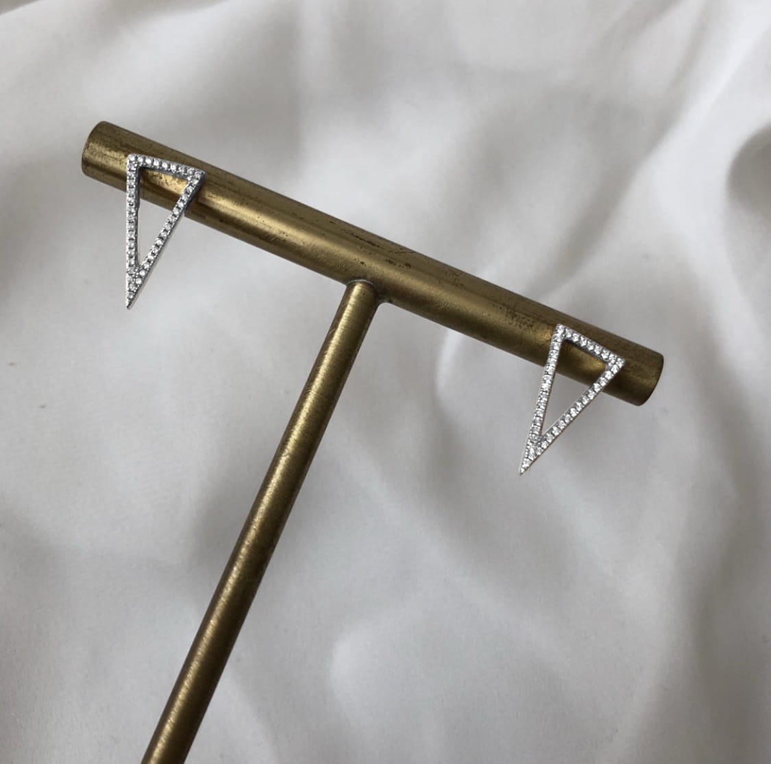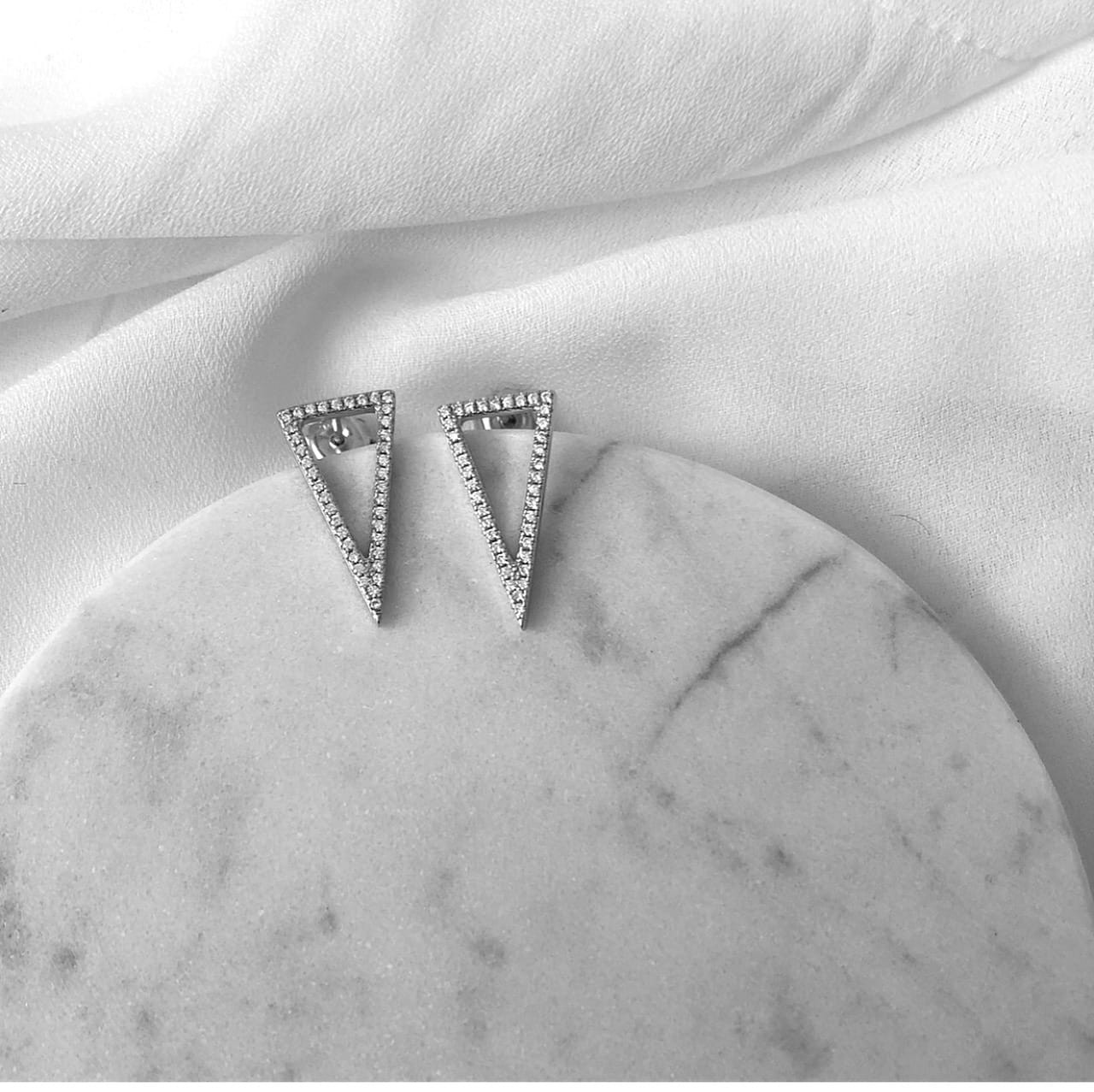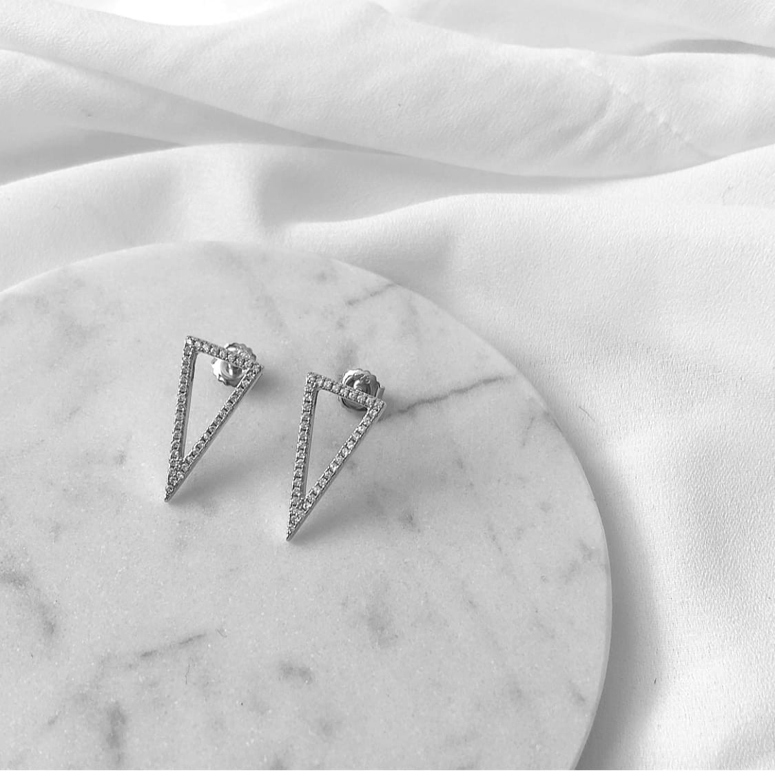Srebrne kolczyki trójkąt z cyrkoniami wykonane w całości ze srebrna