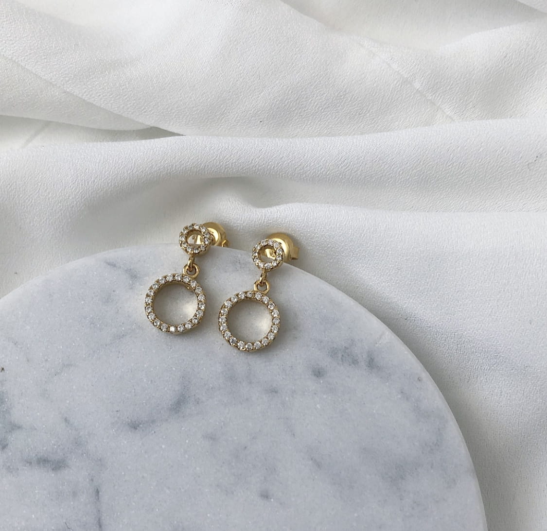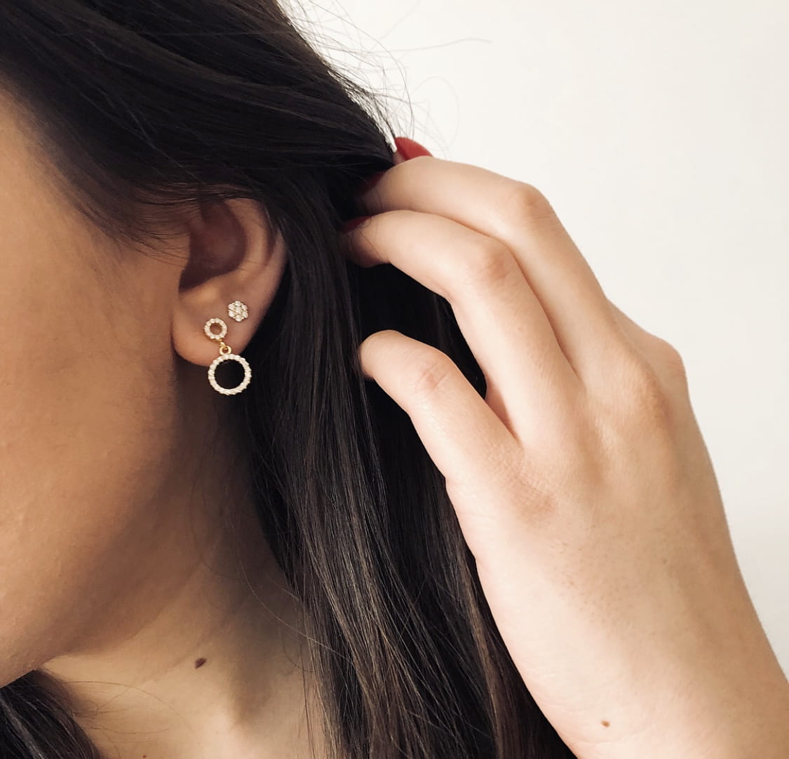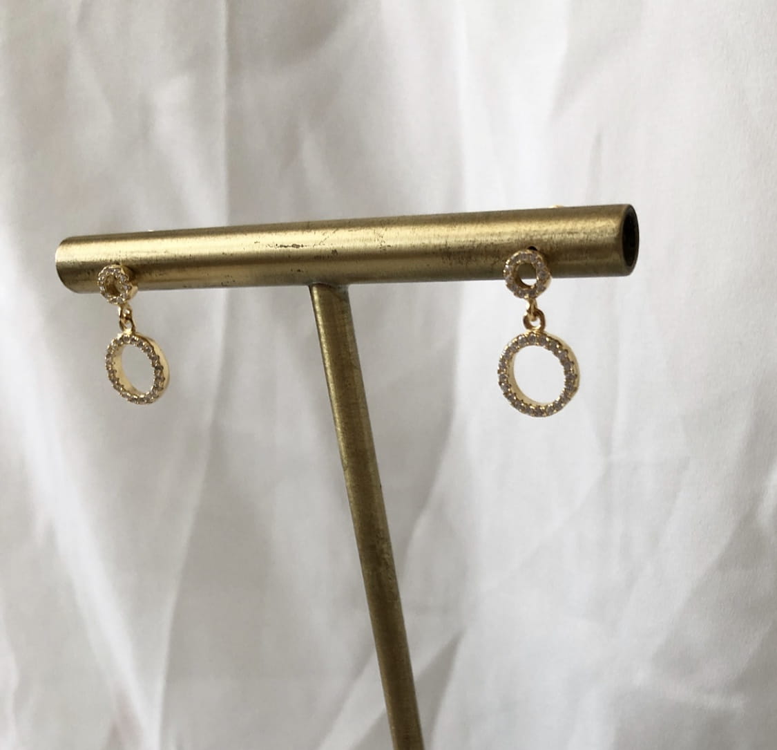 Srebrne pozłacane kolczyki dwa koła z cyrkoniami wykonane w całości ze srebrna
