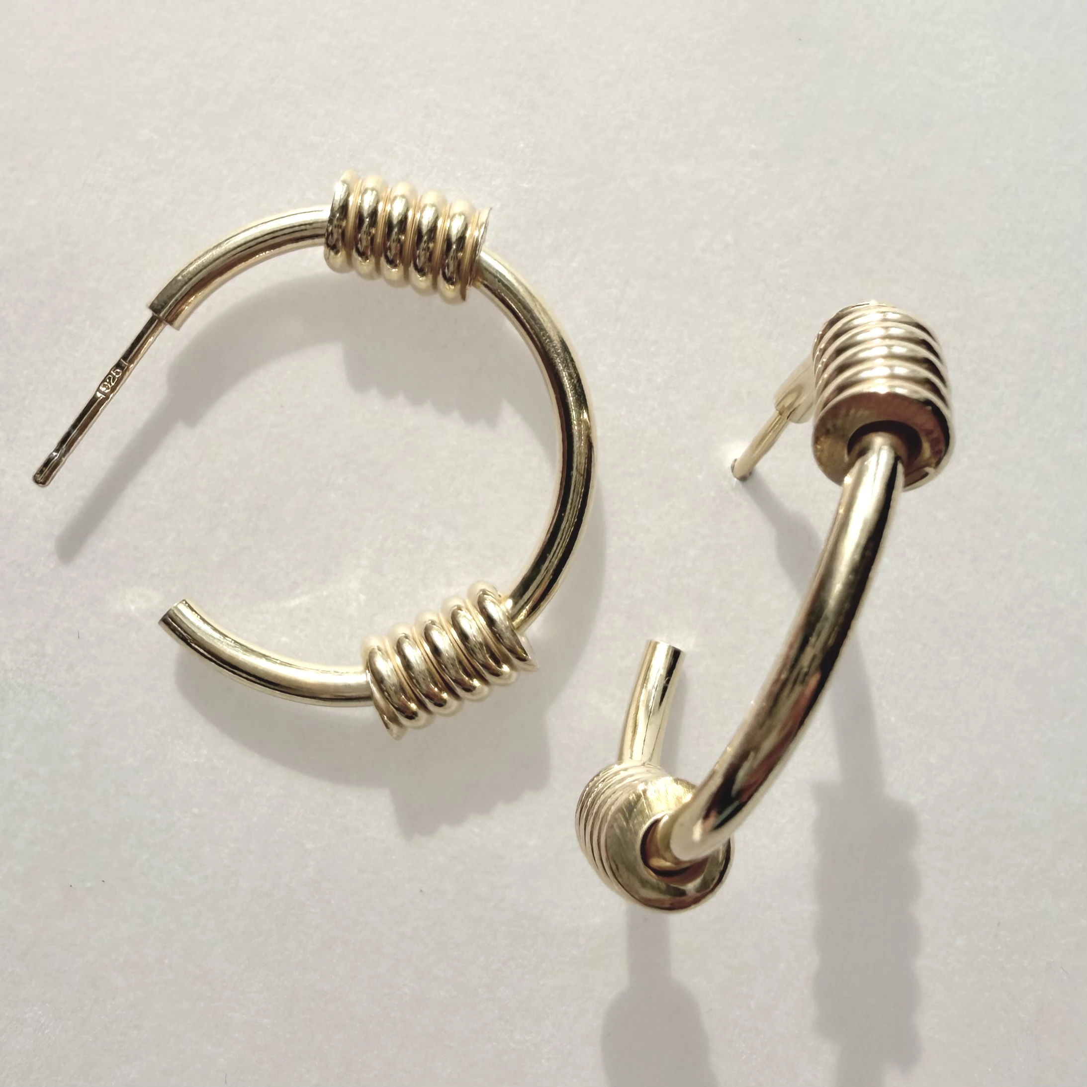 Srebrne pozłacane kolczyki koła skręcone