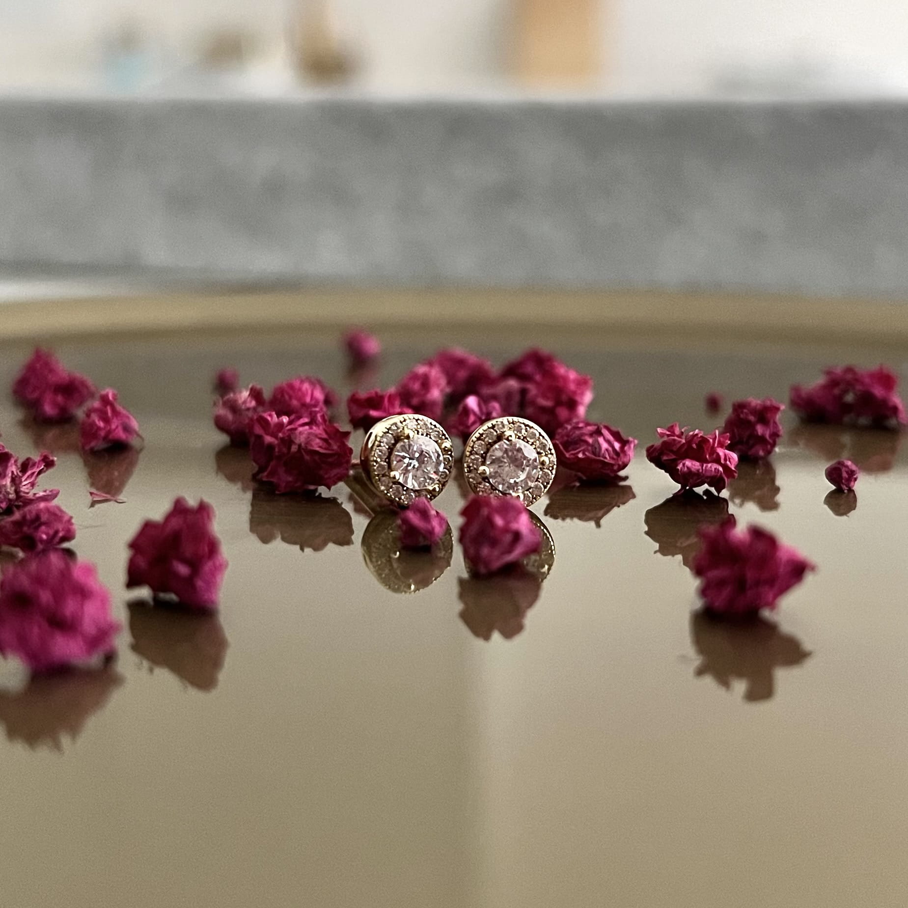 Srebrne pozłacane kolczyki z cyrkoniami ELEGANCJA